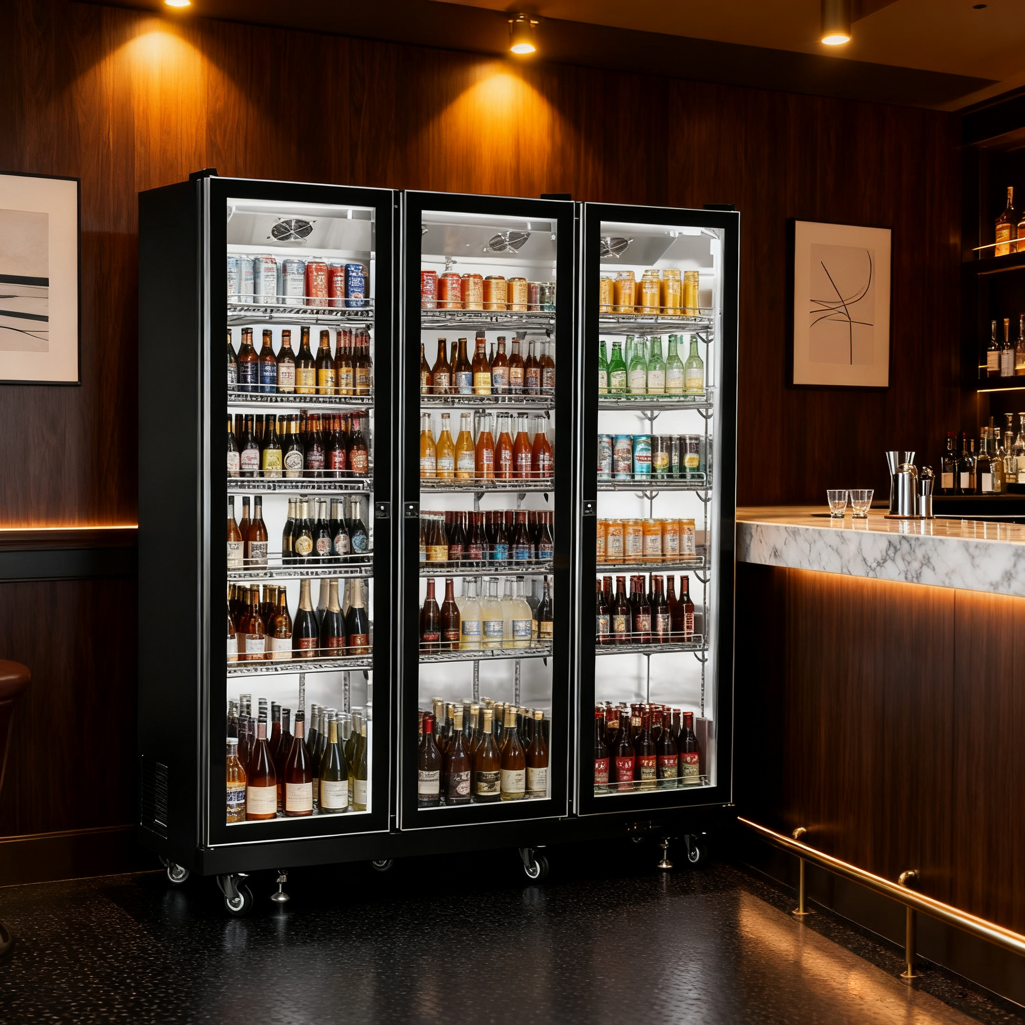 Ideal for supermarkets, bars, and cafés to showcase beverages and packaged drinks. Features multi-door, large-capacity design with frost-free fan cooling and 360° circulation for rapid cooling recovery. Adjustable LED lighting in three colors enhances product visibility. Various sizes and designs available.