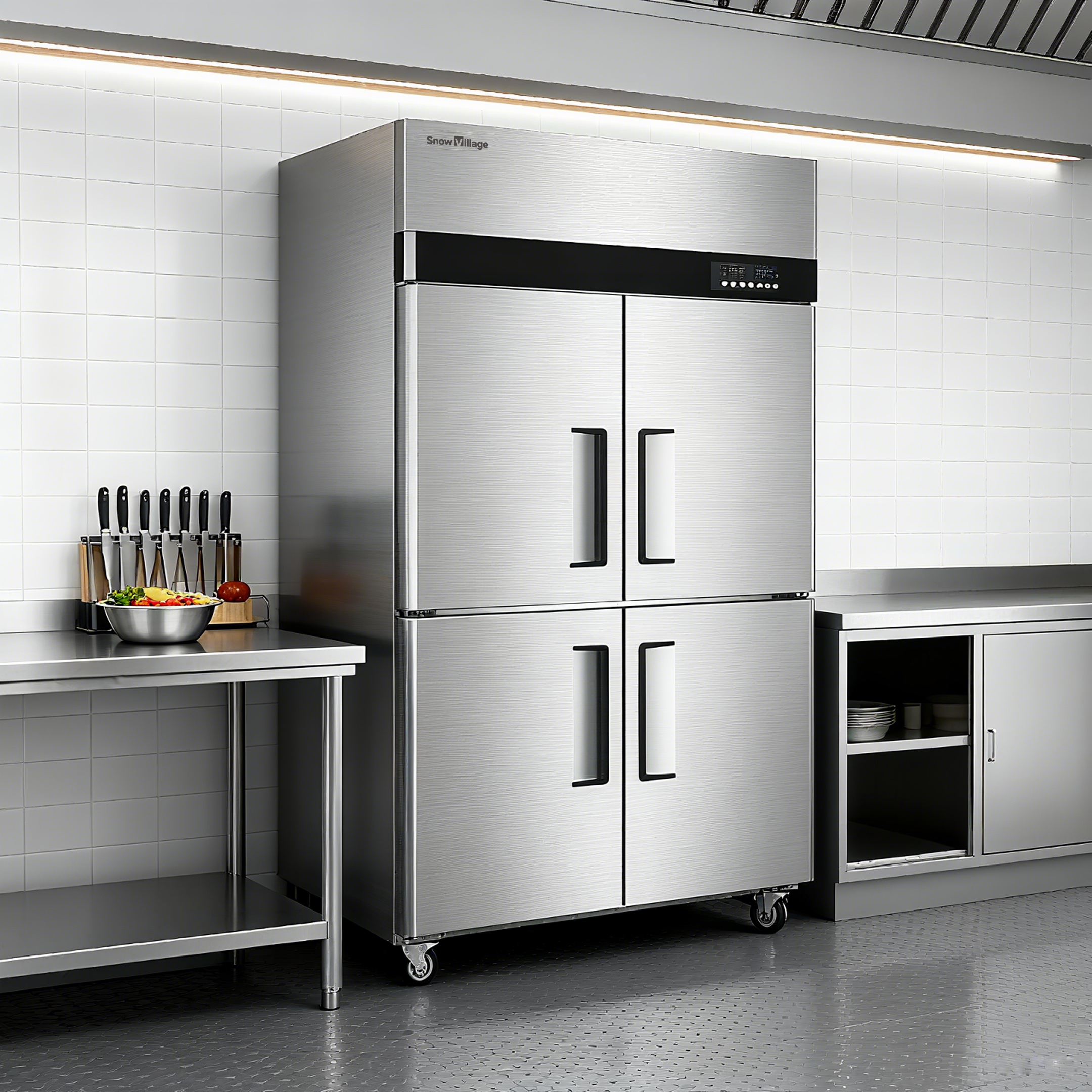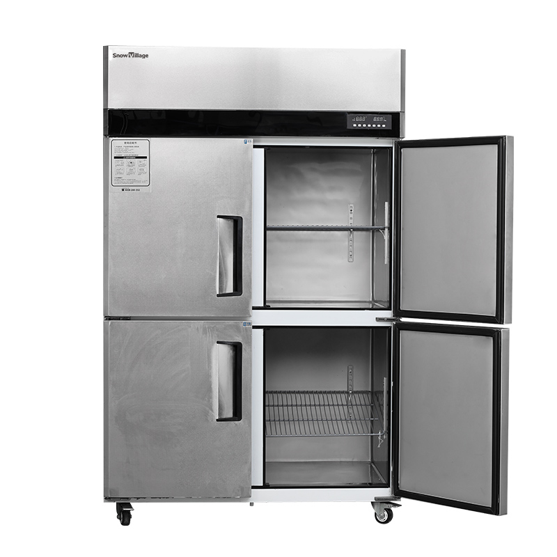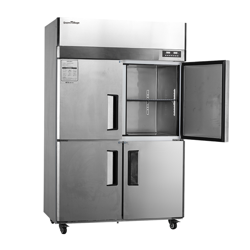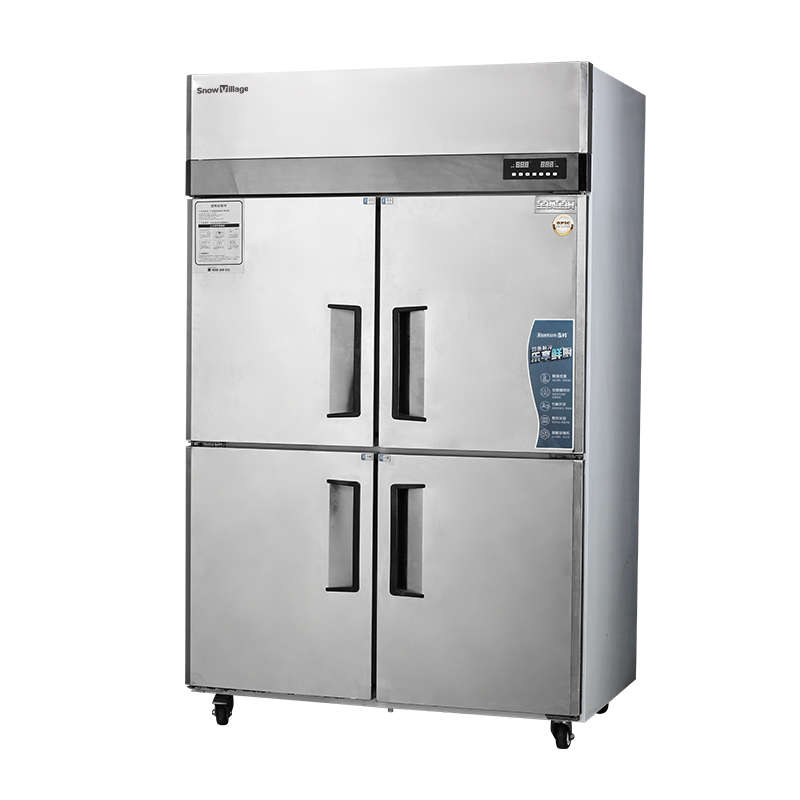Suitable for kitchens in restaurants, milk tea shops, and coffee shops. Direct cooling system with dual-temperature functionality. Upper and lower compartments are independently controlled, with the upper compartment for freezing and the lower for refrigeration. Available in four-door or six-door designs for easy access. Stainless-steel body for easy cleaning and durability.