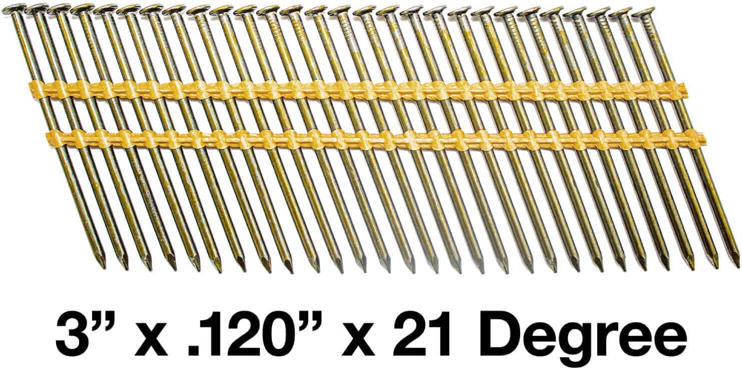 2-3/8" x .113 (8d) 21 Degree Plastic Collated Framing Nail in Plastic Strip - (SMALL BOX) ~700 Nails-2-3/8 inch x .113 8d Cooler 21 degree smooth shank vinyl coated plastic strip collated nails-For building crates or pallets, cooler nails are thinner and narrows at the tip to prevent splitting-General construction and framing, subfloors or sheathing where framing nails maybe too long or heavy-21 degree nails have round full head compared to typical 30 degree nails with a clipped head-Compatible with Grip-Rite , Hitachi , Bostitch and Makita 21 Degree Nailers