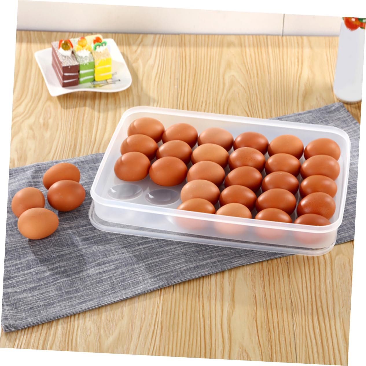 Package Include 2 x egg storage boxes Characteristics - Material: Plastic Refrigerator Egg Container. - Color: Transparent Freezer Egg Organizer Holder. - Size: 34.50X26.00X4.00cm/ 13.56X10.22X1.57inch Freezer Egg Container. - Made of plastic material, durable and reusable for a long time, easy to clean Refrigerator Egg Holder. - Suitable for fridge, freezer, pantry, refrigerator, kitchen cabinets, camping and picnic Refrigerator Egg Organizer Case. - Compact size can save of space in the fridge, organize your refrigerator Fridge Egg Storage Cases. - Large capacity to store eggs and fits all sizes of eggs, meet your needs and take care of your eggs. - Prevent collision fragile, easy to move, can be put in the refrigerator to refrigerate, convenient to use.Goods DescriptionRefrigerator Egg Container Have you ever noticed that eggs have cracked in the pack? The egg holder will protects your eggs in a high-strength container.Fridge Egg Storage Cases You can store many eggs at one time that are familiar in supermarkets, and other keep egg fresher longer by keeping it in a instead of