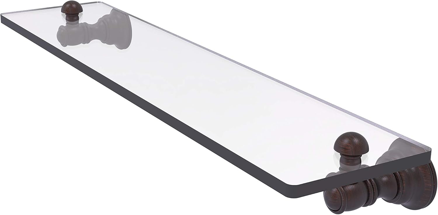 Reimagine your bathroom with this finely crafted glass shelf. Traditional styling and superior quality resonate from this hand crafted glass shelf. Featuring thick, beveled-edge glass and solid brass hardware this shelf is crafted for durability strength and style. One of the many coordinating accessories in the Allied Brass Collection of accessories, this subtle glass shelf is the perfect complement to your bathroom decor.