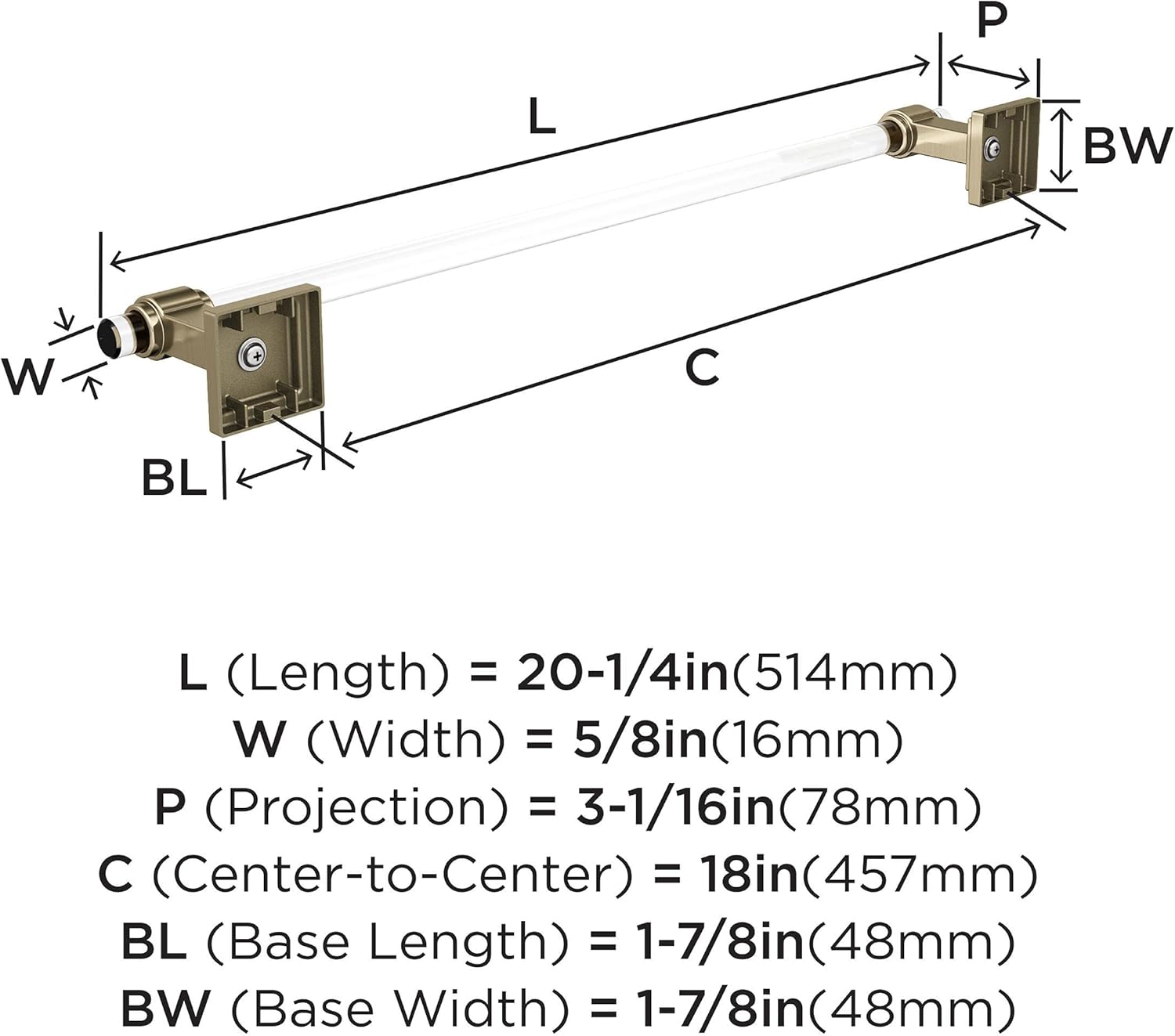 The Amerock BH36062CCZ Glacio 5-7/16 in (138 mm) Length Towel Ring is finished in Clear/Champagne Bronze. Glacio is sleek and minimalist, blending crystal-clear accents and beautifully finished metallic mountings that seem to float above the surface for an ethereal look and feel. The velvety, auburn glow of Champagne Bronze, resonates with warmth. The finish imparts a radiant and sophisticated palette to the kitchen or bath. Founded in 1928, Amerock’s award-winning home solutions including decorative and functional cabinet hardware, bath accessories, decorative hooks and wall plates have built the company’s reputation for chic design accessories that inspire homeowners to express their personal style. Amerock offers a variety of styles and finishes at affordable prices that add the perfect finishing touch to any room.