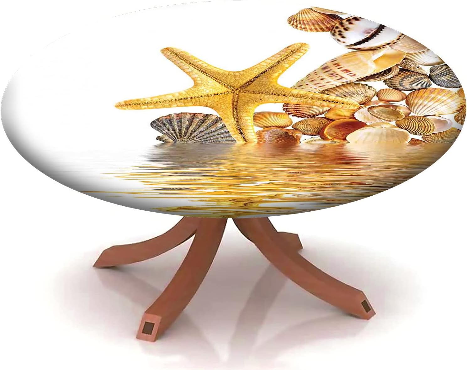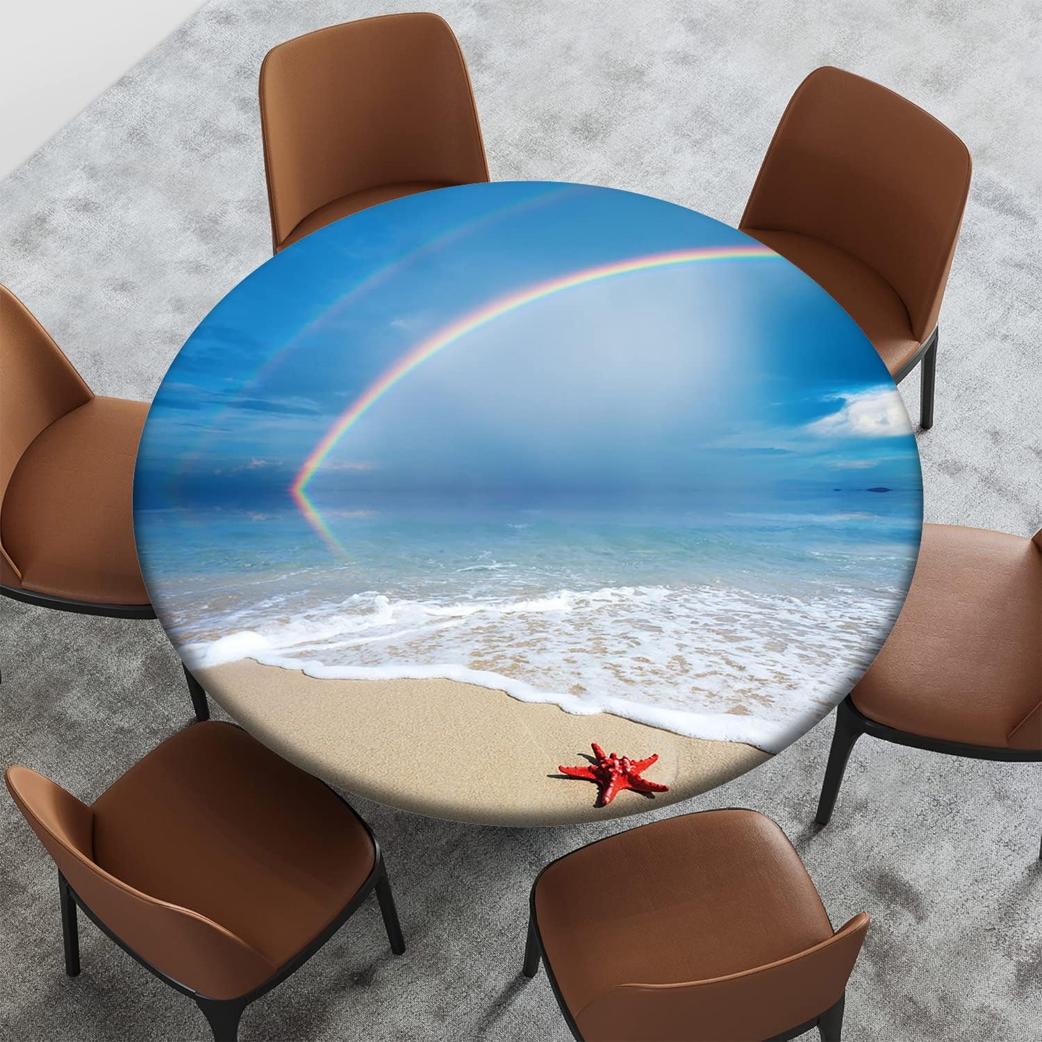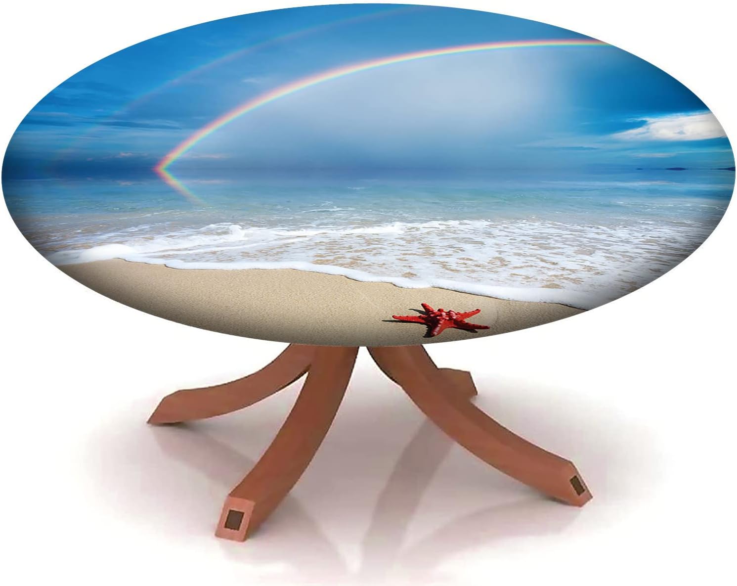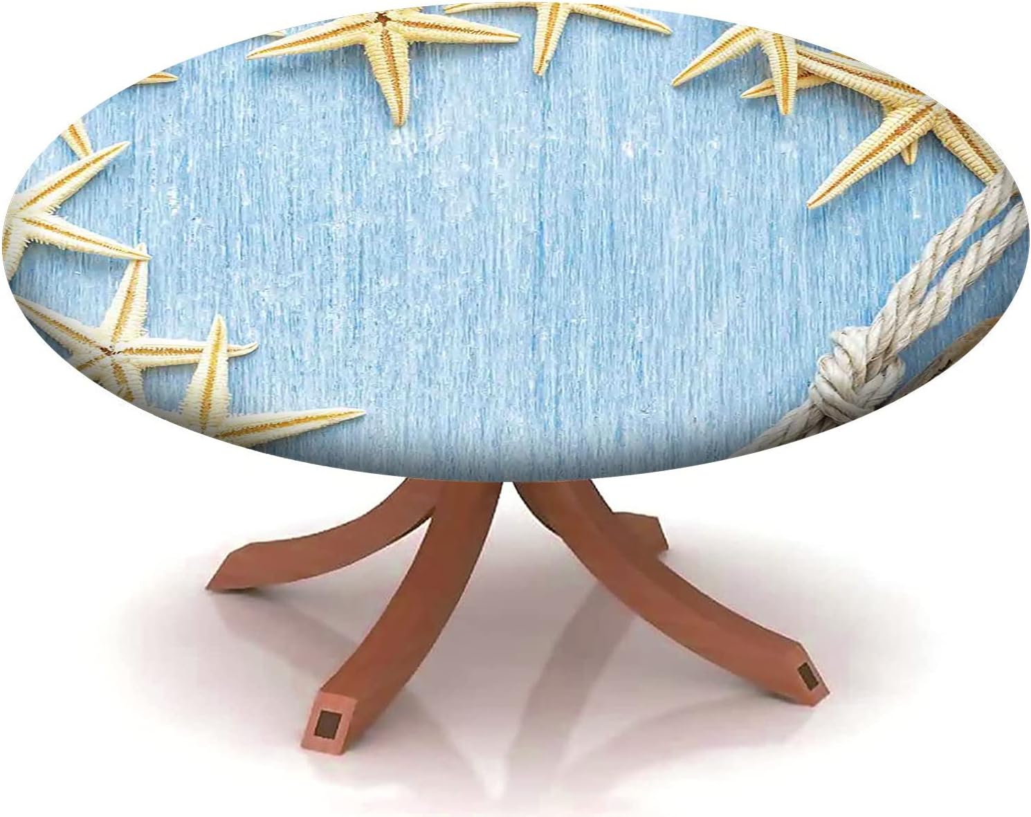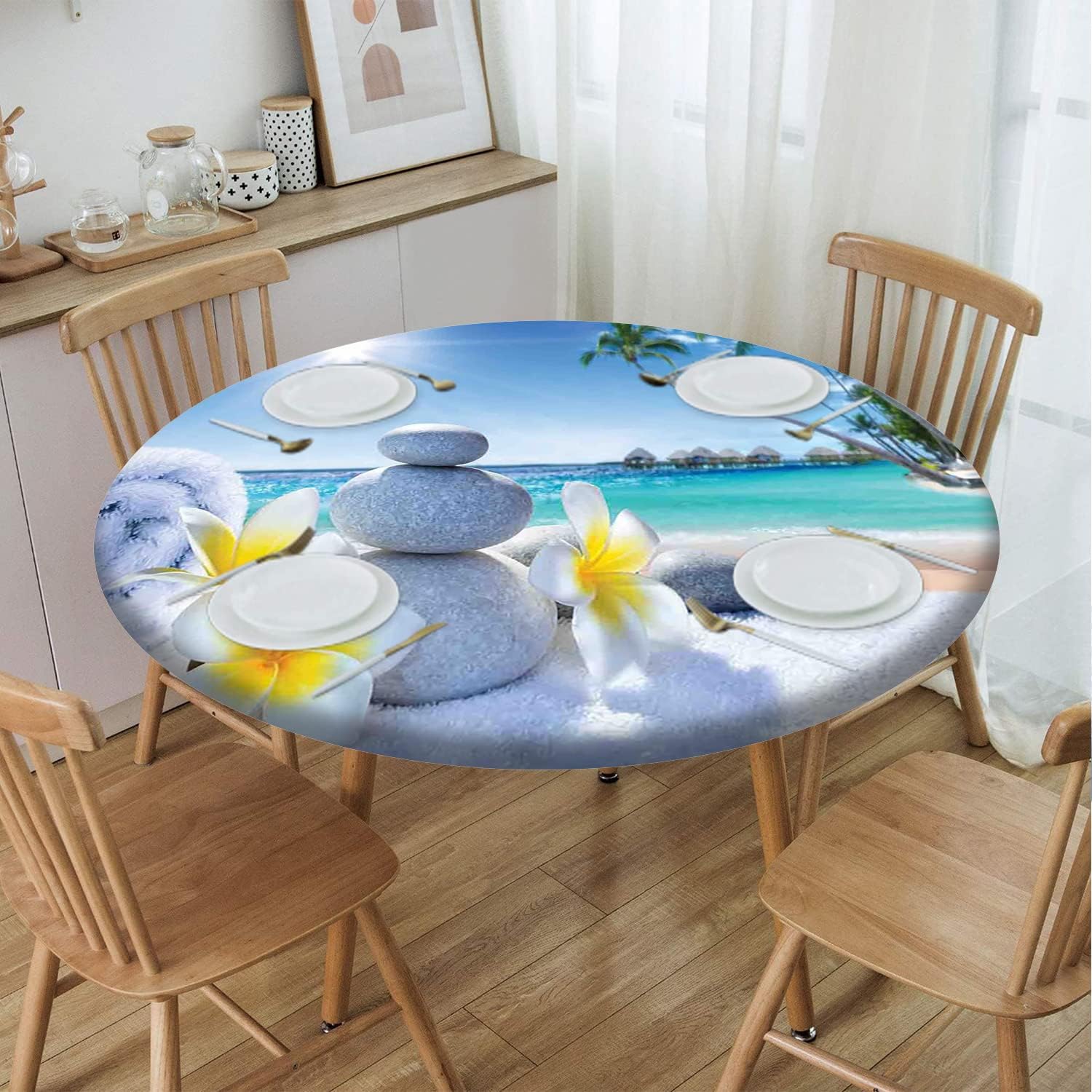 Beach Pattern Round Fitted Tablecloth,Elastic Edge,Suitable for Catering and Kitchen Can Wipe Dining Round Table coverr,Blue Green,for 57" to 68" Round Tables