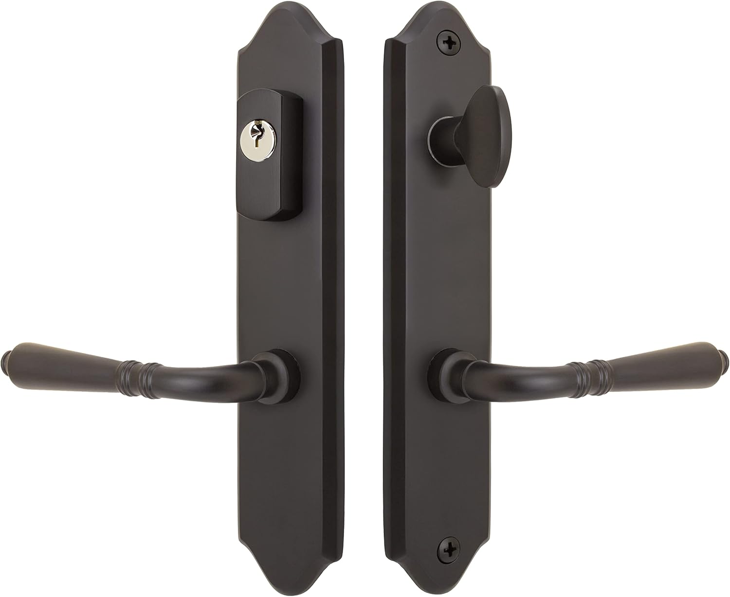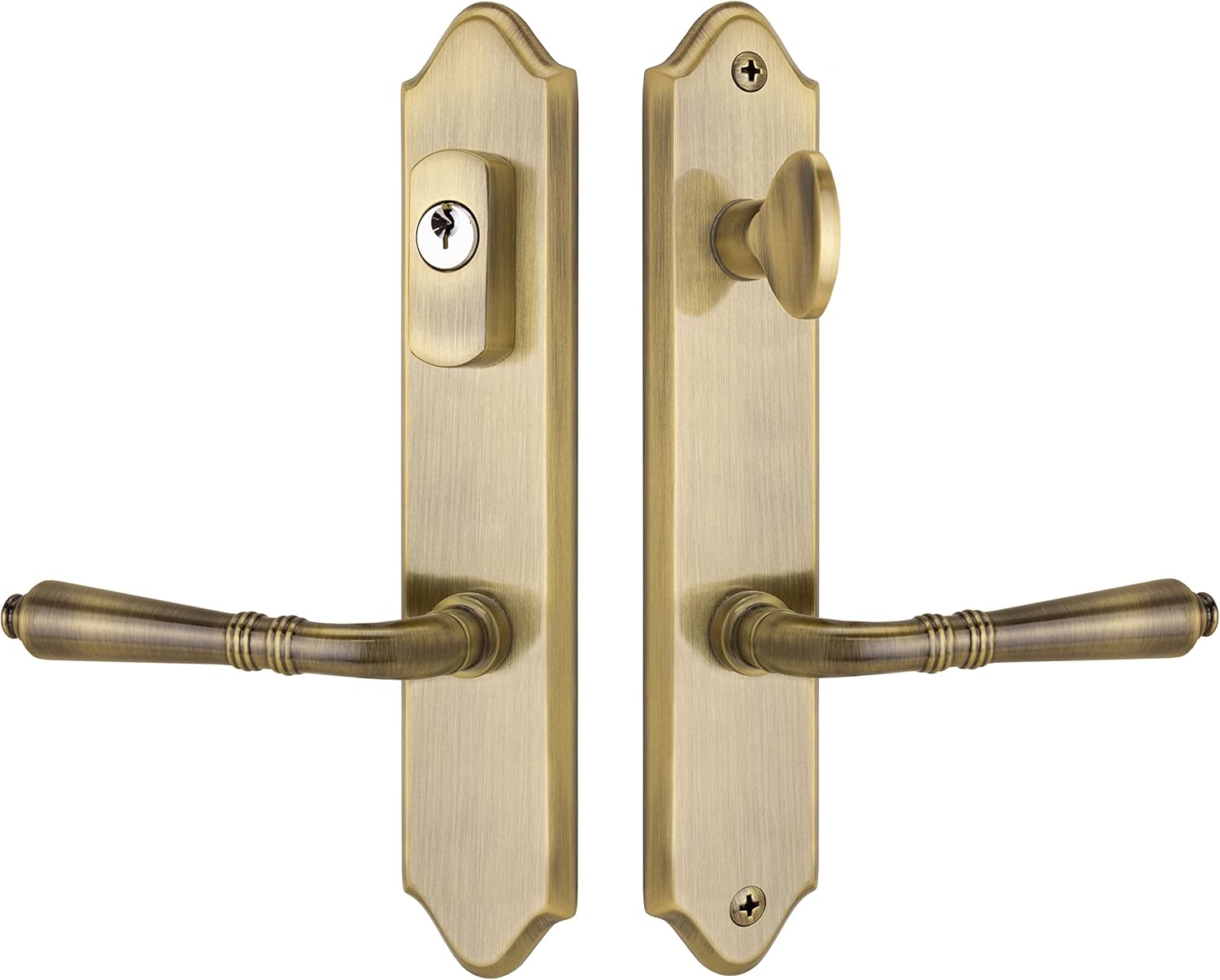 "➊【Available Finishes】Offered in a range of elegant finishes to complement any design aesthetic or preference, the Imperial Active lever set features slender escutcheon plates with a timeless, classic European design. ➋【Premium Craftsmanship】Expertly constructed from solid brass, featuring secure through-door mounting and a robust lever spindle engineered for smooth operation and enduring performance. ➌【Compatible with select multipoint locks】Designed to work with Multipoint locks from Andersen E-Series, Atrium, Biltbest, Eagle, FPL (#7003 series), G-U, Hurd (Energy Saver), KML by Andersen, Marvin Integrity, Paddock Lockmaster, and Superior. Please check existing lock measurements to confirm compatibility. ➍【Important Measurements】Mounting hole distance (center-to-center): 178mm (7-11/16"). Square spindle: 8mm x 105mm. Fits standard 1-3/4” exterior doors; hardware kits for 2-1/4” thick doors available. ➎【Coordinate with existing hardware】Matching inactive trim, entry, privacy, passage, and dummy sets are available, allowing you to coordinate this hardware style throughout your home. Search for: FPL + Bellagio + function, for example “FPL Bellagio inactive trim”."