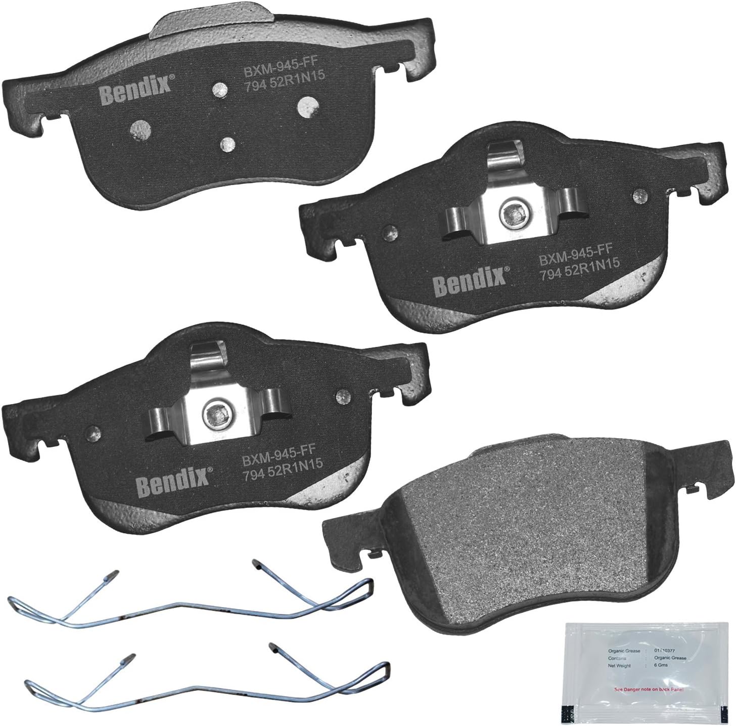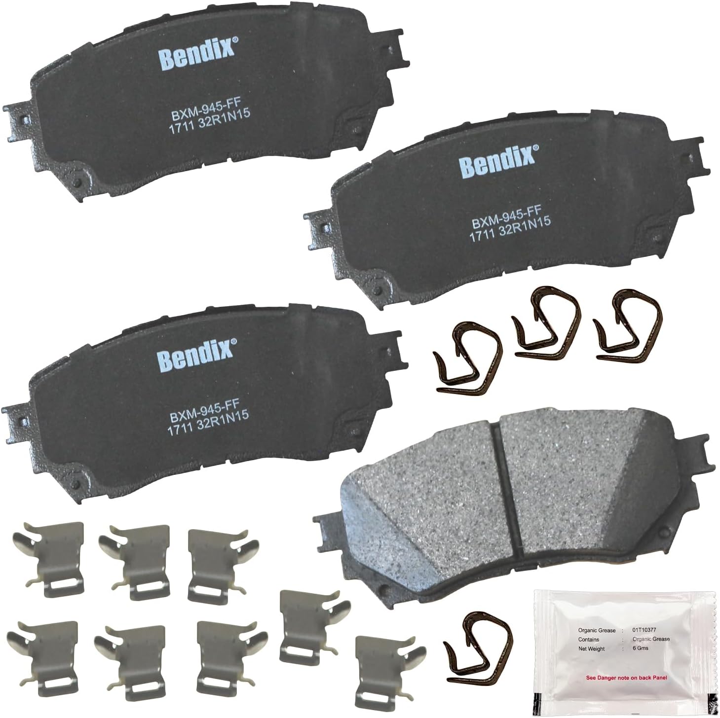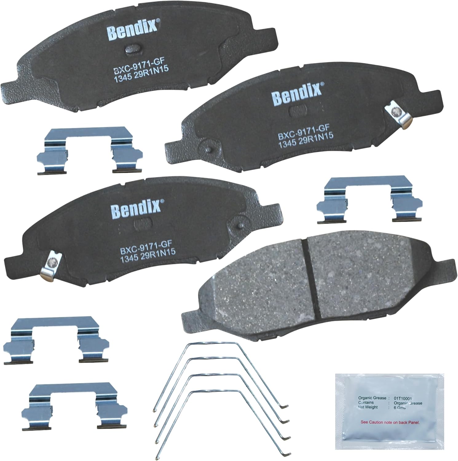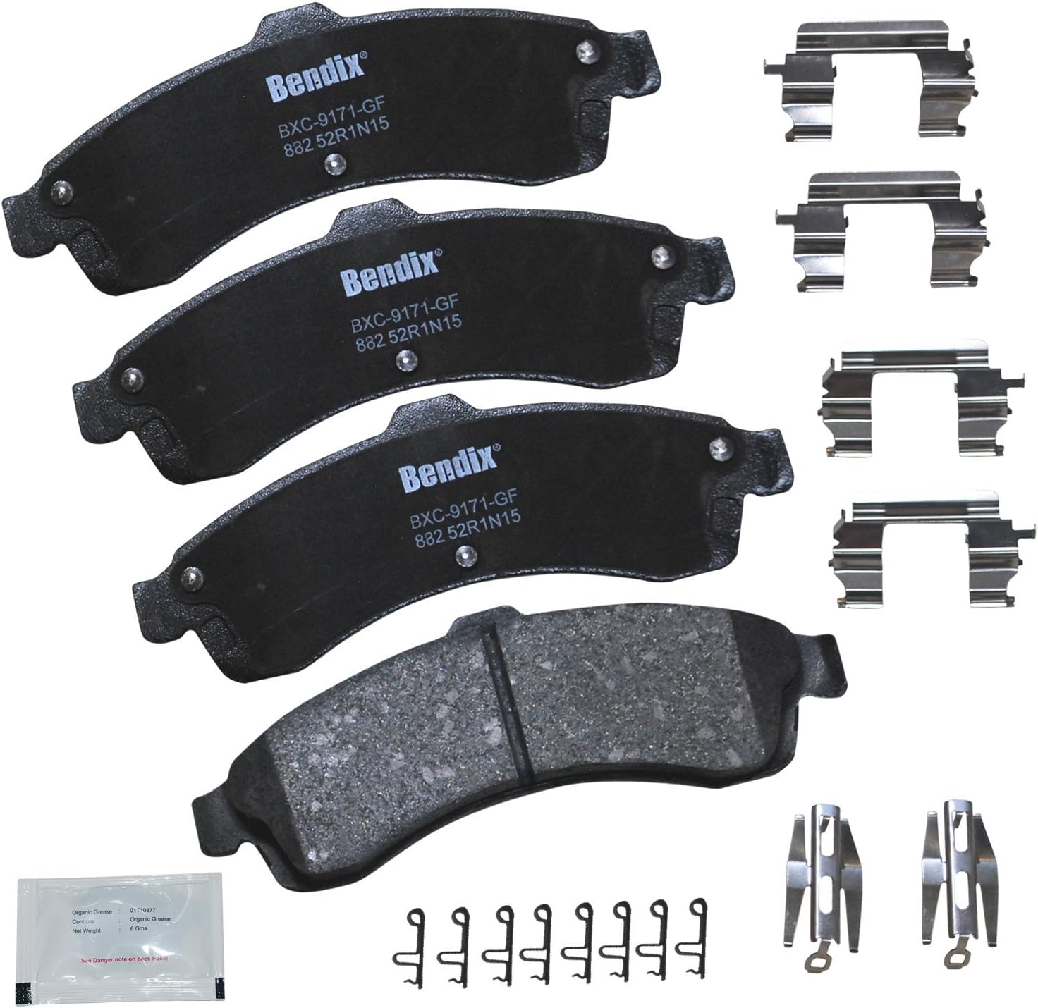 Bendix Priority 1 Ceramic Brake Pads Set with Installation Hardware. These brake pads are engineered and designed to meet all OE specifications for fit, form, and function while providing safe, consistent, and reliable stopping performance. With specific shims, slots, and chamfers, the pads provide not only a precise fit but also an ultra-quiet braking experience.