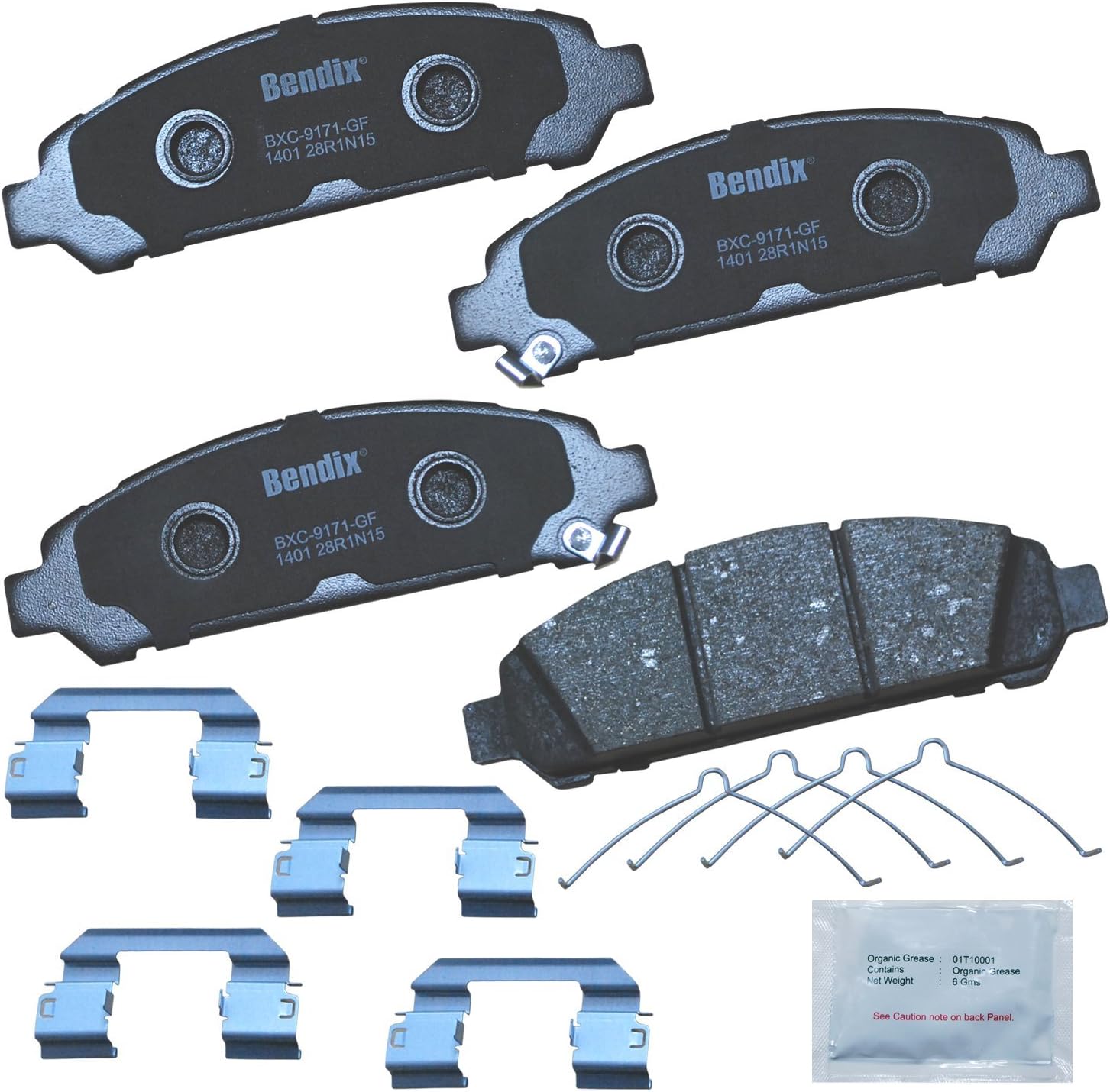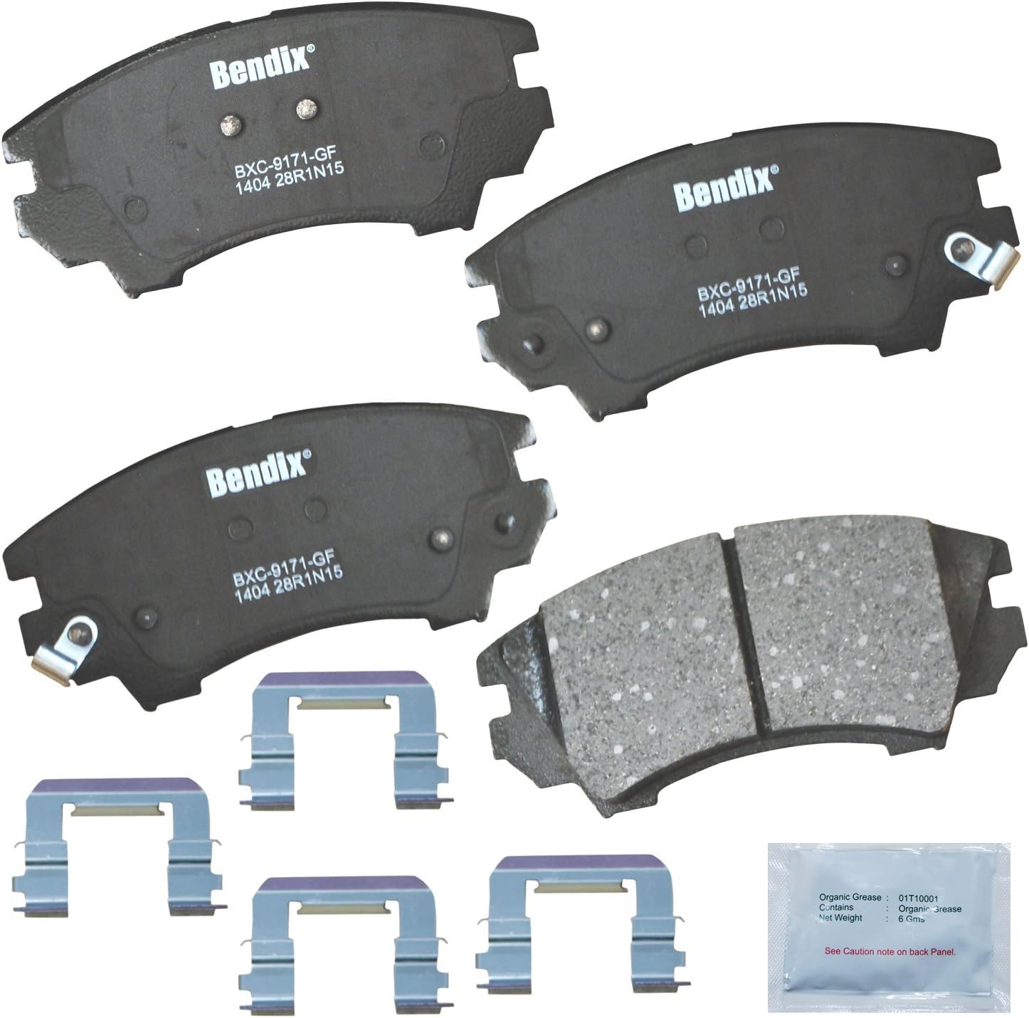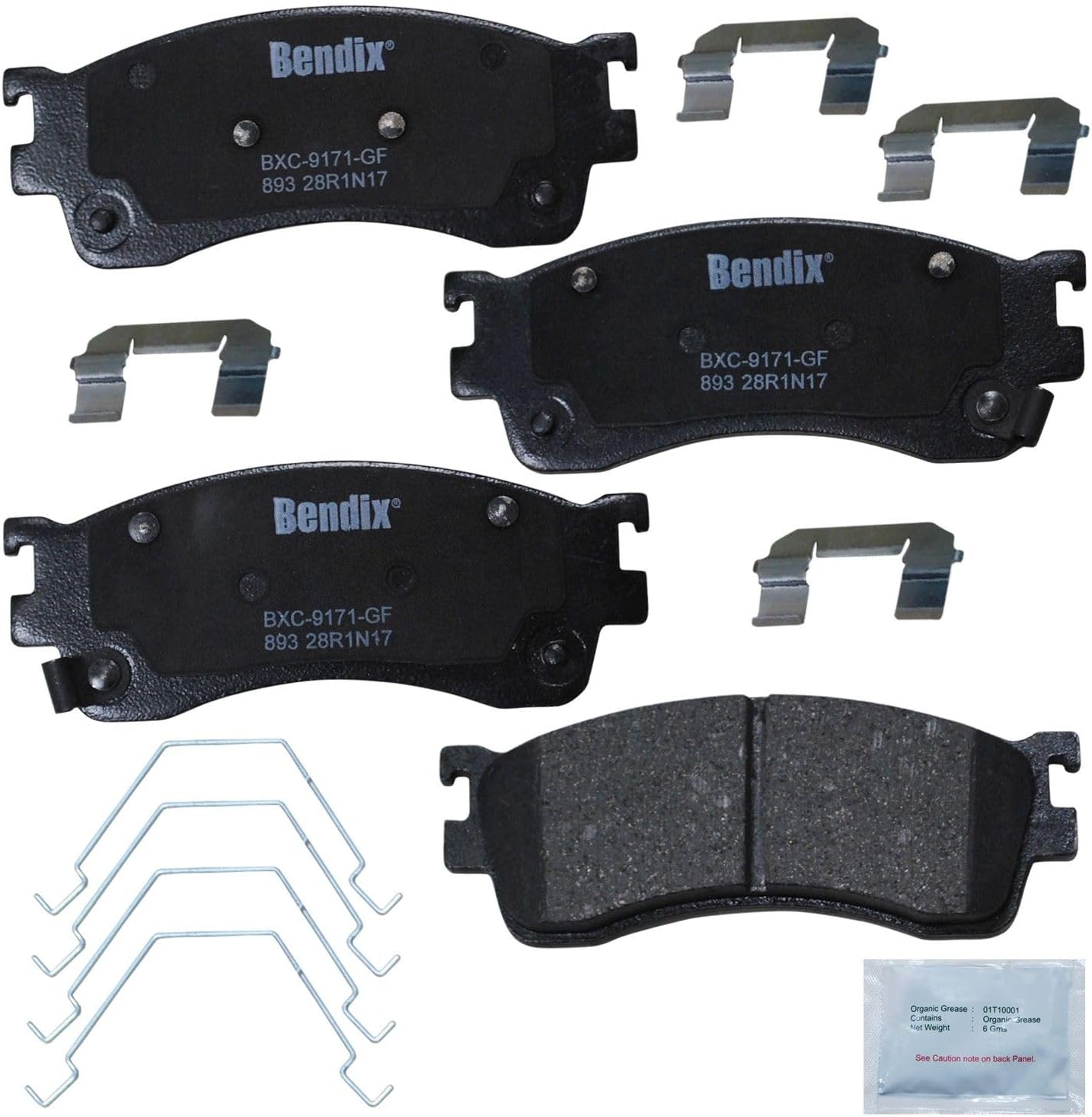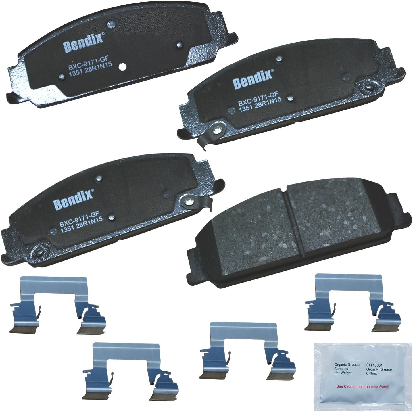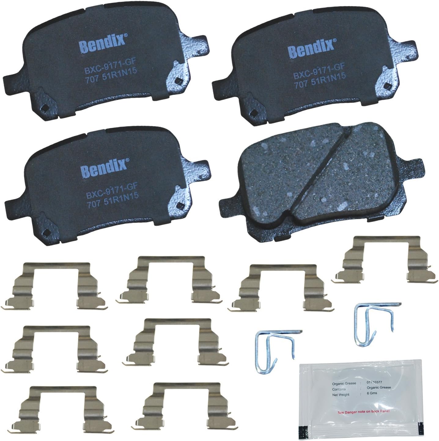 Bendix Priority 1 Ceramic Brake Pads Set with Installation Hardware. These brake pads are engineered and designed to meet all OE specifications for fit, form, and function while providing safe, consistent, and reliable stopping performance. With specific shims, slots, and chamfers, the pads provide not only a precise fit but also an ultra-quiet braking experience.