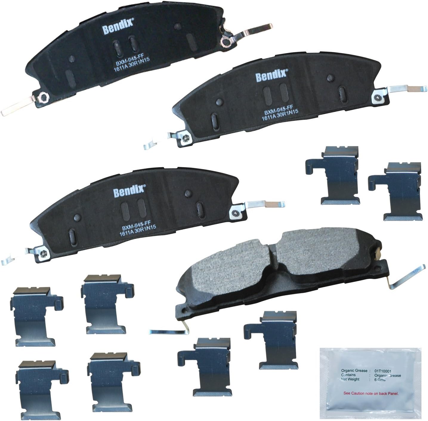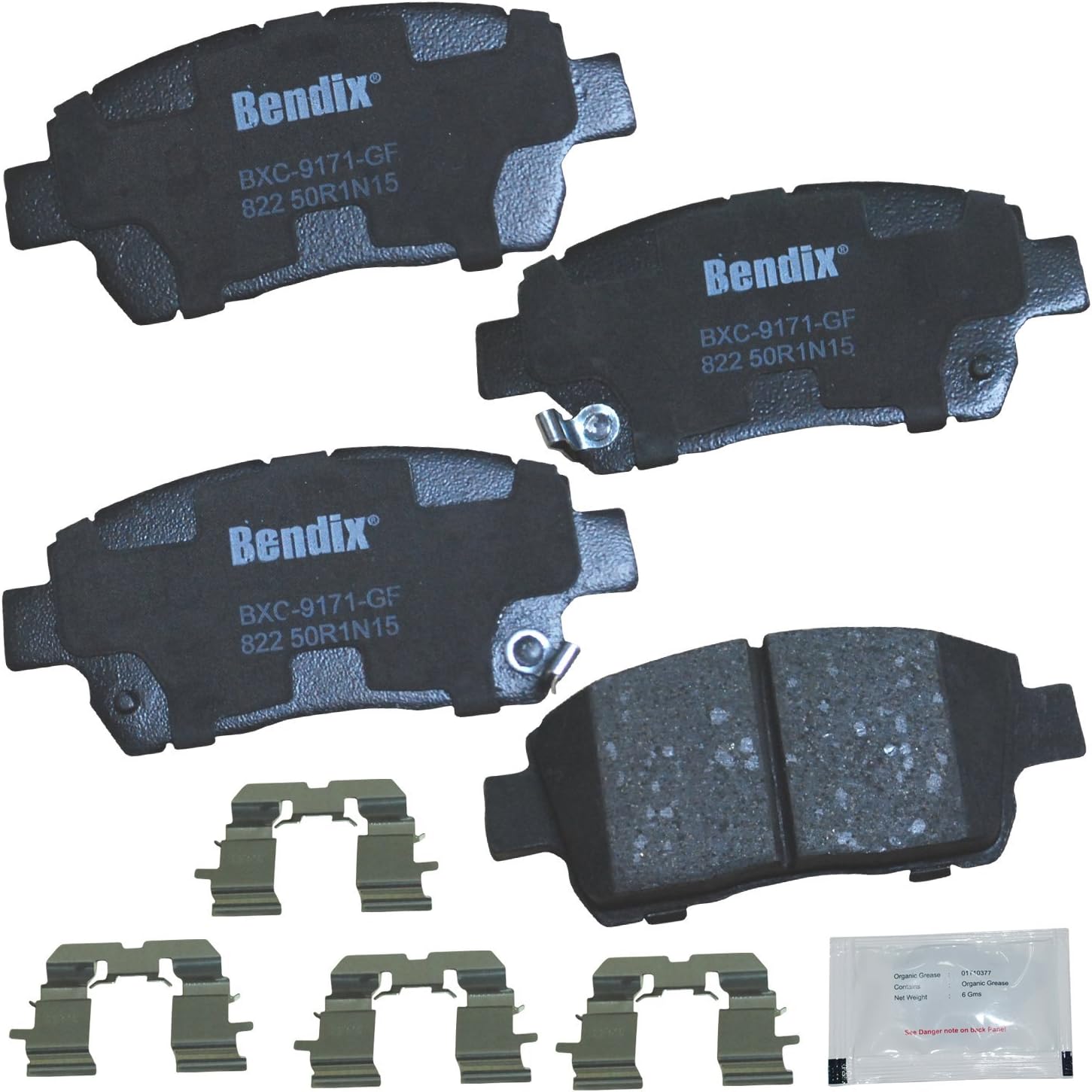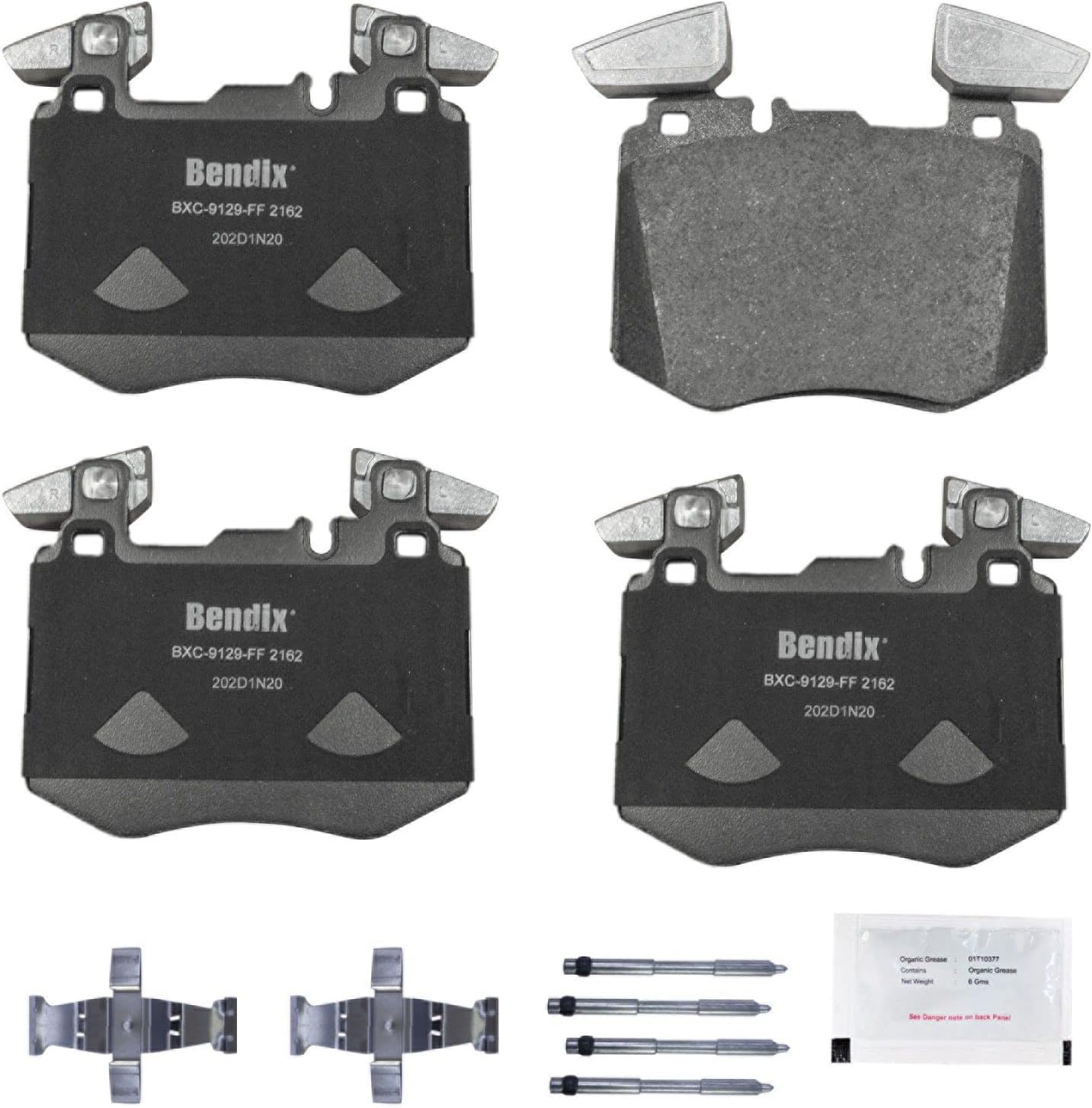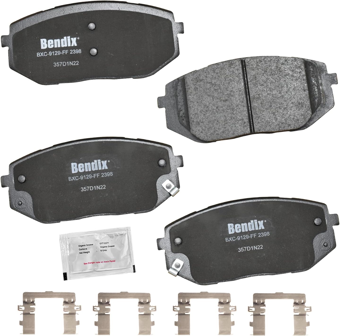 Bendix Priority 1 Ceramic Brake Pads Set with Installation Hardware. These brake pads are engineered and designed to meet all OE specifications for fit, form, and function while providing safe, consistent, and reliable stopping performance. With specific shims, slots, and chamfers, the pads provide not only a precise fit but also an ultra-quiet braking experience.