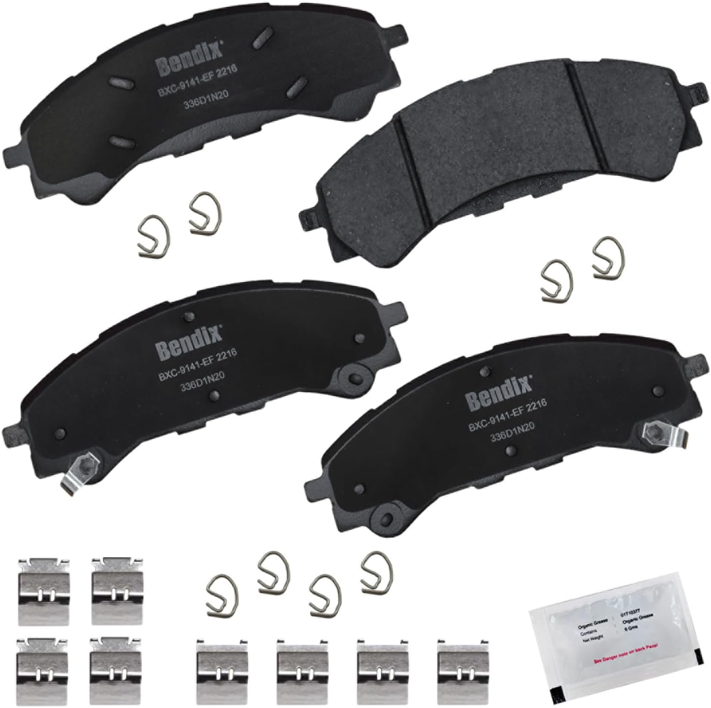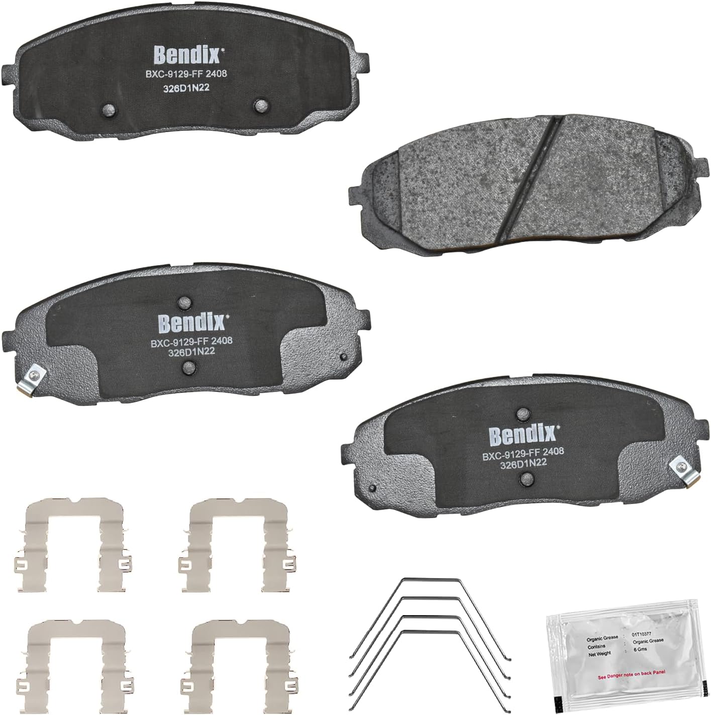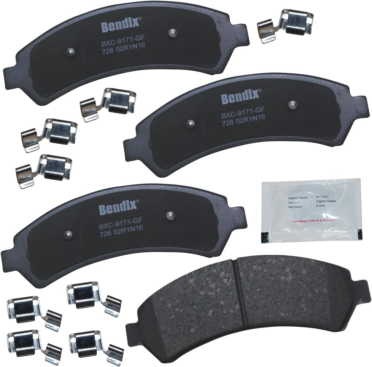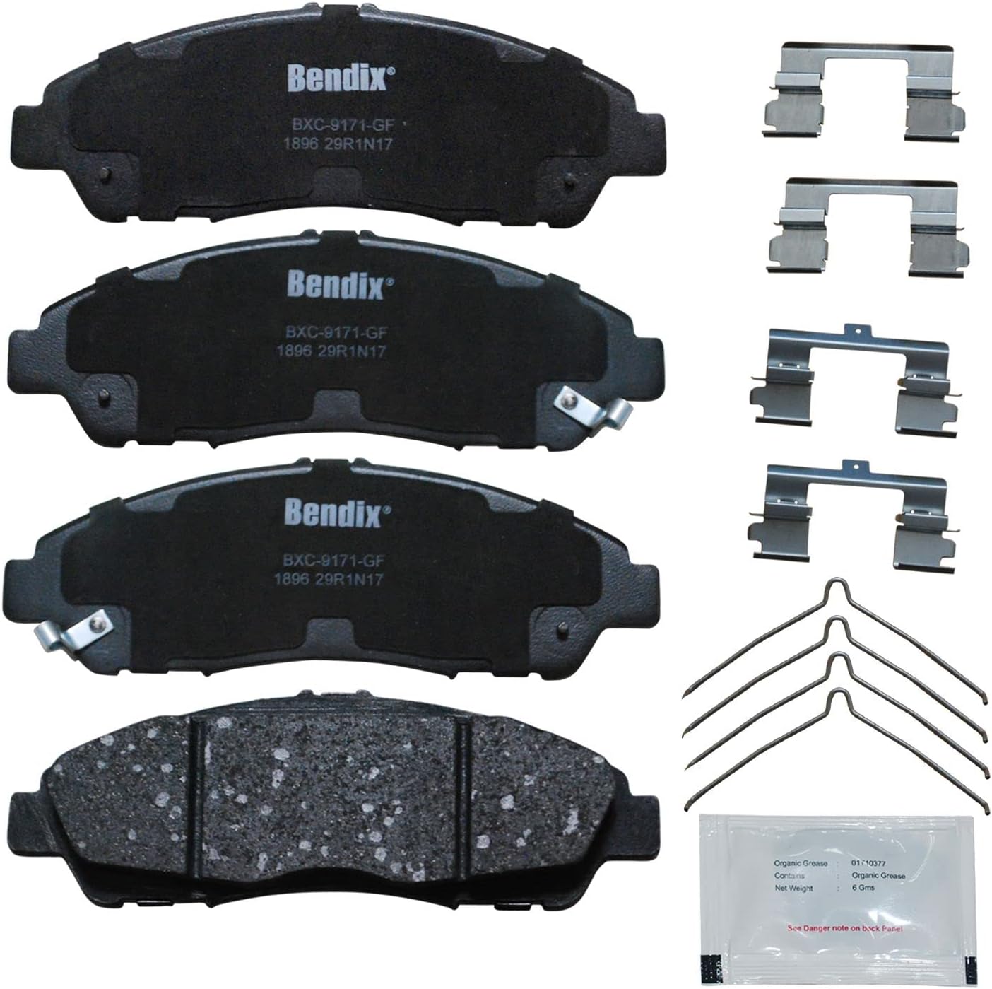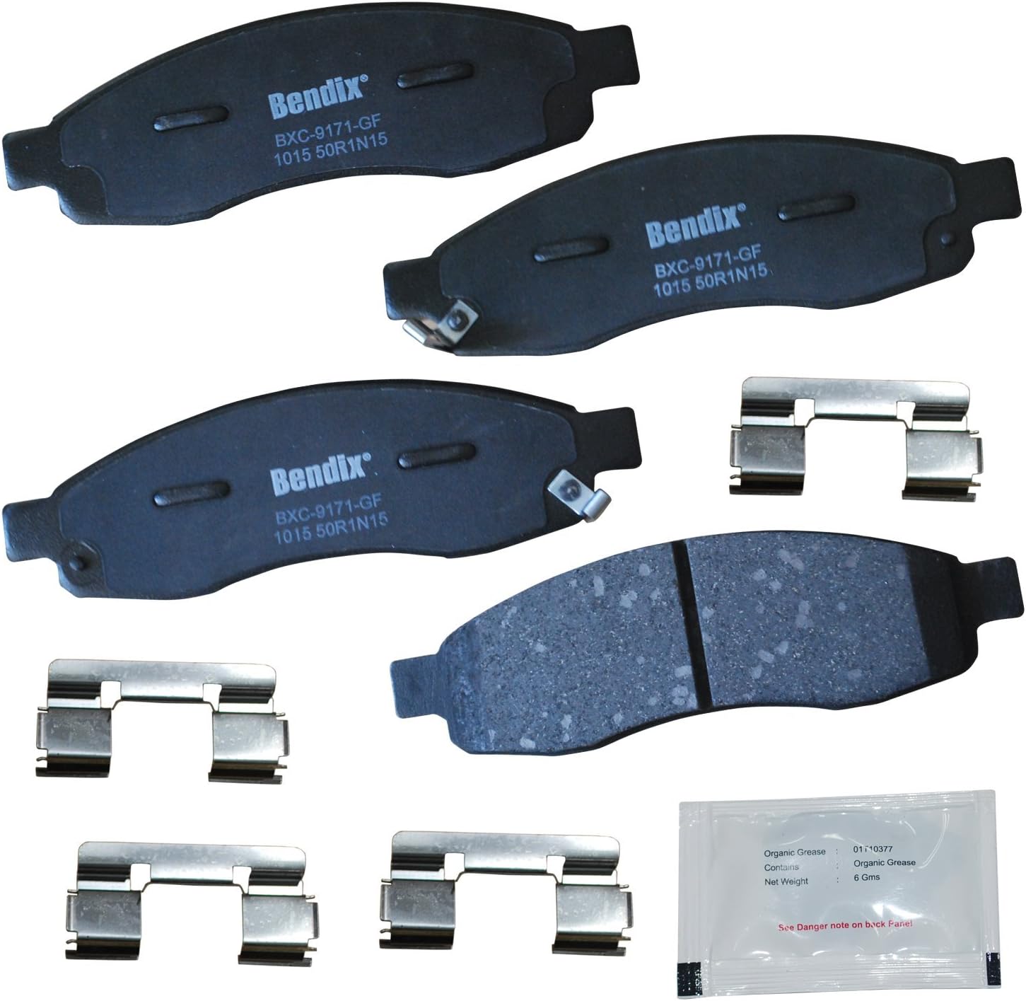 Bendix Priority 1 Ceramic Brake Pads Set with Installation Hardware. These brake pads are engineered and designed to meet all OE specifications for fit, form, and function while providing safe, consistent, and reliable stopping performance. With specific shims, slots, and chamfers, the pads provide not only a precise fit but also an ultra-quiet braking experience.