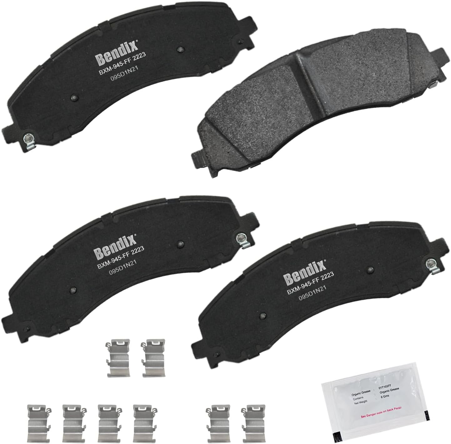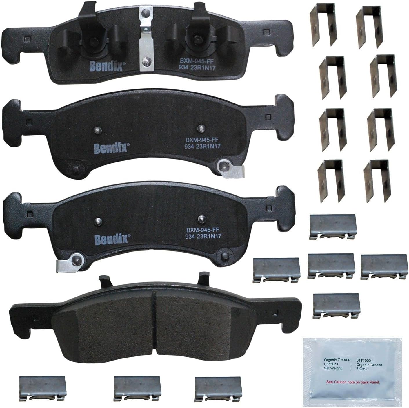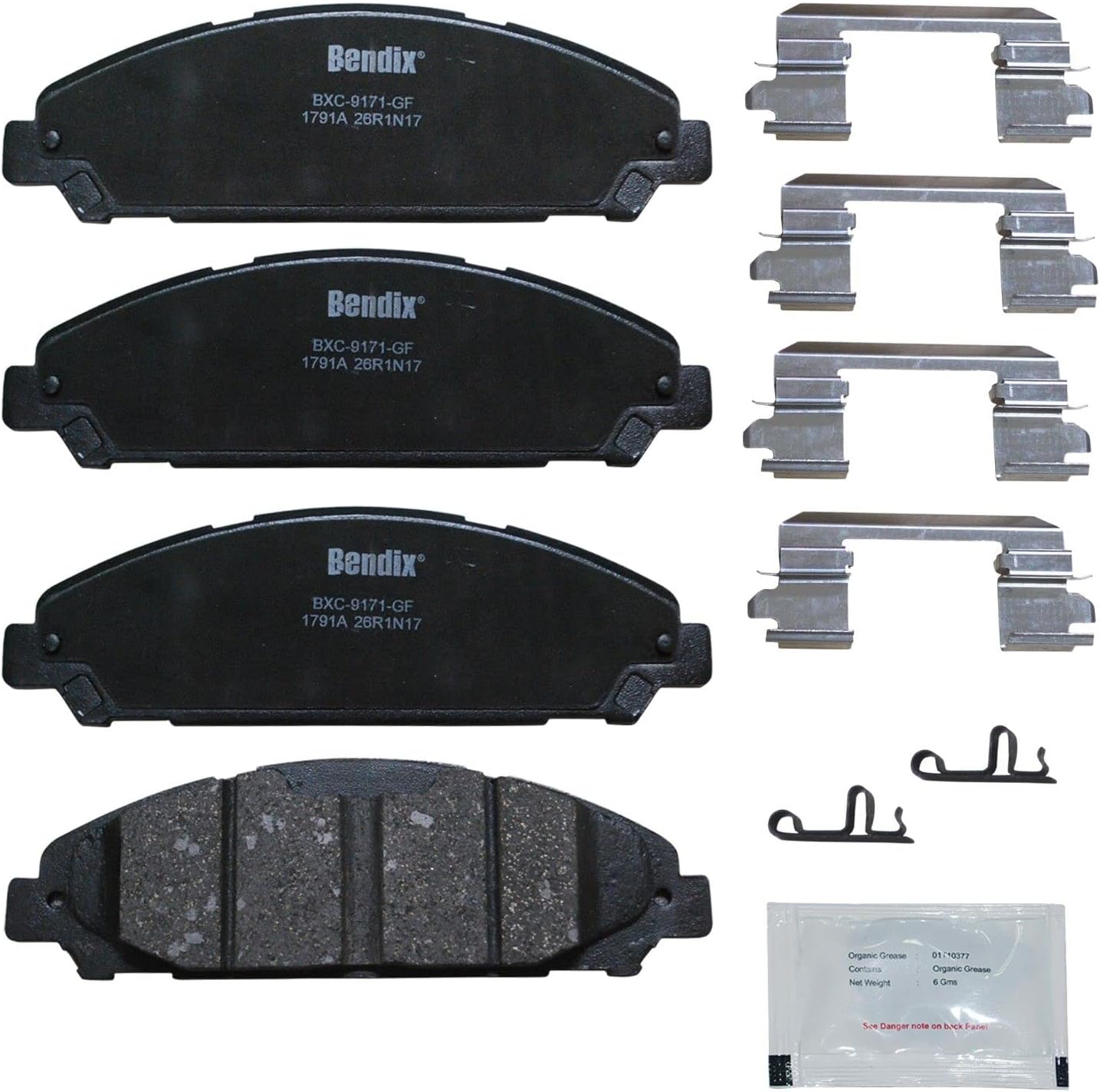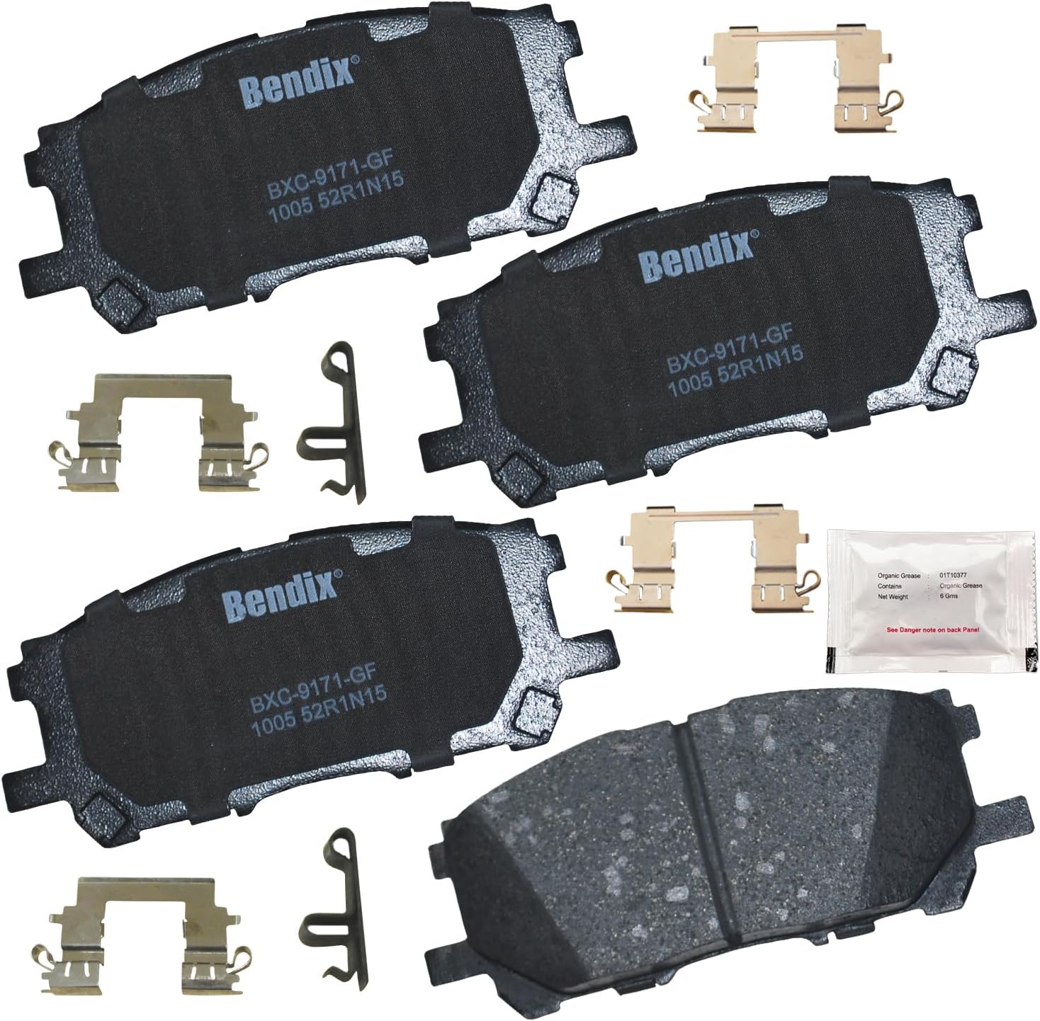 Bendix Priority 1 Ceramic Brake Pads Set with Installation Hardware. These brake pads are engineered and designed to meet all OE specifications for fit, form, and function while providing safe, consistent, and reliable stopping performance. With specific shims, slots, and chamfers, the pads provide not only a precise fit but also an ultra-quiet braking experience.