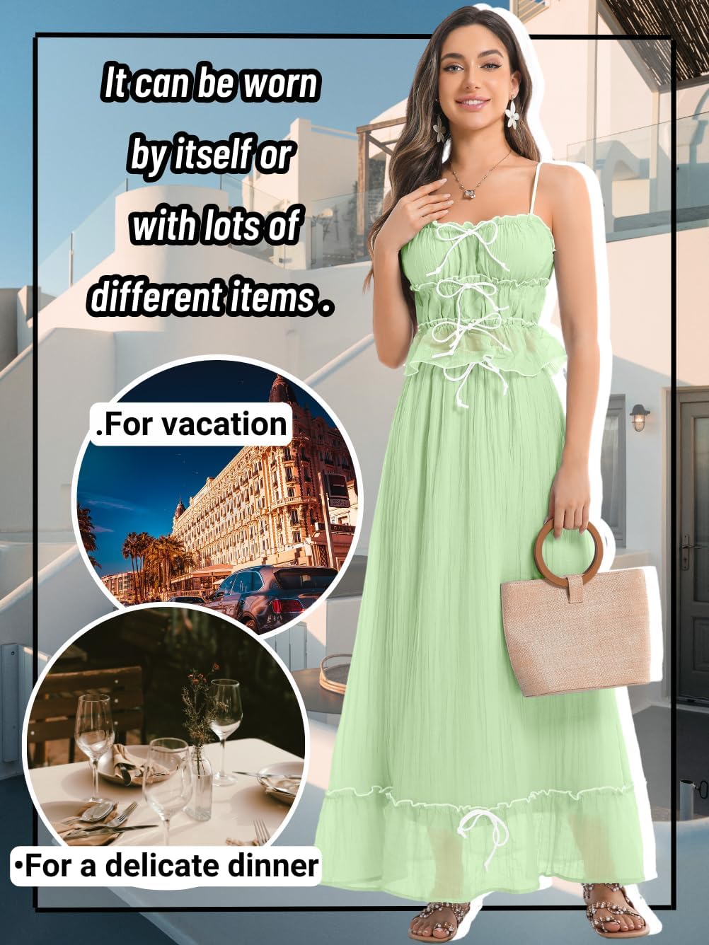 #Product's Q&A: Q: Is this material comfortable? A: Absolutely, this dress is crafted from lightweight and breathable fabric, ensuring exceptional comfort and skin-friendly. Q: Will this dress shrink after washing? A: No, it is designed to maintain its size and color even after washing. Q: How many items are included in the product? A: The product includes 1 top and 1 skirt. #Washing Guidelines: Machine-washable when placed in a laundry bag. Use cold water, and kindly avoid prolonged exposure to bleach.