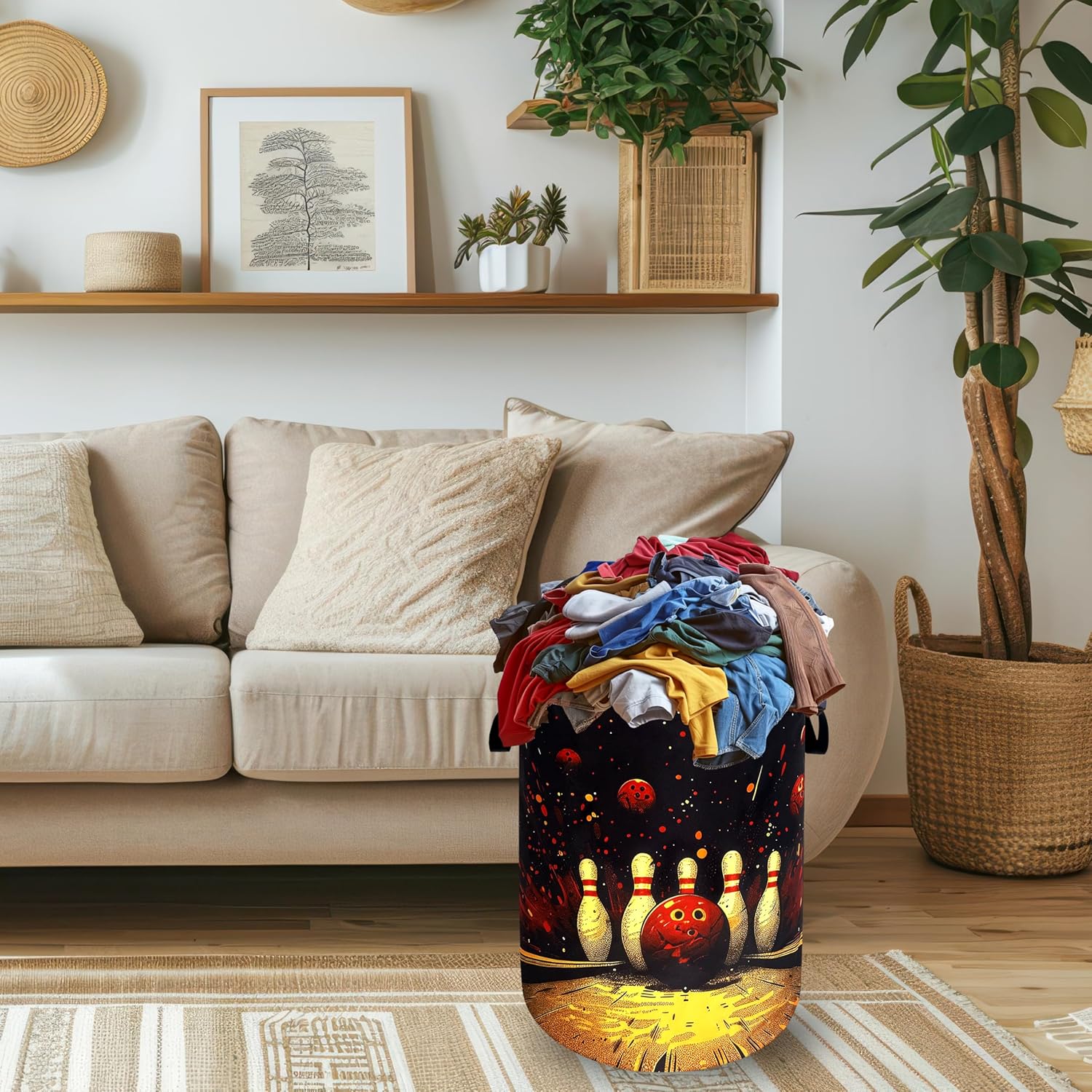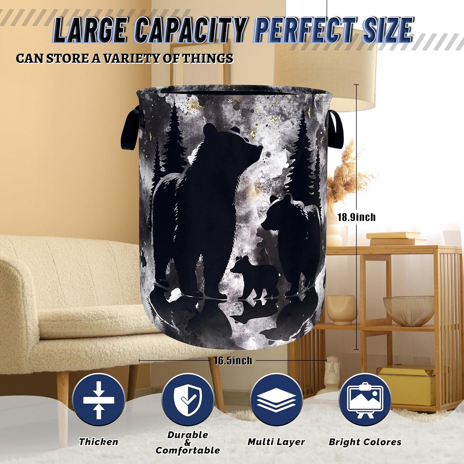 RGIFYIAE laundry basket adds decorative storage to your life. It is not only a good helper for home life, but also a charming decorationOxford cloth material, lightweight and durable, and added lining, more beautiful and tidyThe laundry basket measures 18.9 inches/48 cm (height) x 16.5 inches/41 cm (depth), with enough space to store a large amount of clothes and various items. The vibrant pattern design enriches the color of your home environmentFoldable function, when not in use, our laundry basket can be folded up, which saves space and is convenient for storage, which is very suitable for people with busy lives. Secondly, it can keep our home in order and make tidying up a breeze!Why choose our laundry basket?Our laundry basket is not just a storage solution. It is also a combination of beauty and practicality (the laundry basket just received has compressed packaging, and it may wrinkle during long-distance transportation. This is a normal phenomenon. It can be filled with clothes and will recover after a few days of use). In addition to storing clothes, it can also be used to organize toys, clothes, office sundries, and household sundries. It has a wide range of uses and can be placed in the bathroom, bedroom, laundry room, children's room, dormitory, kitchen, office and other places to make your living environment beautiful and tidy. Easy to clean, just wipe it gently with a cloth, or wash it by hand, which is very convenient. The eye-catching laundry basket can add a touch of art and functionality to your home!
