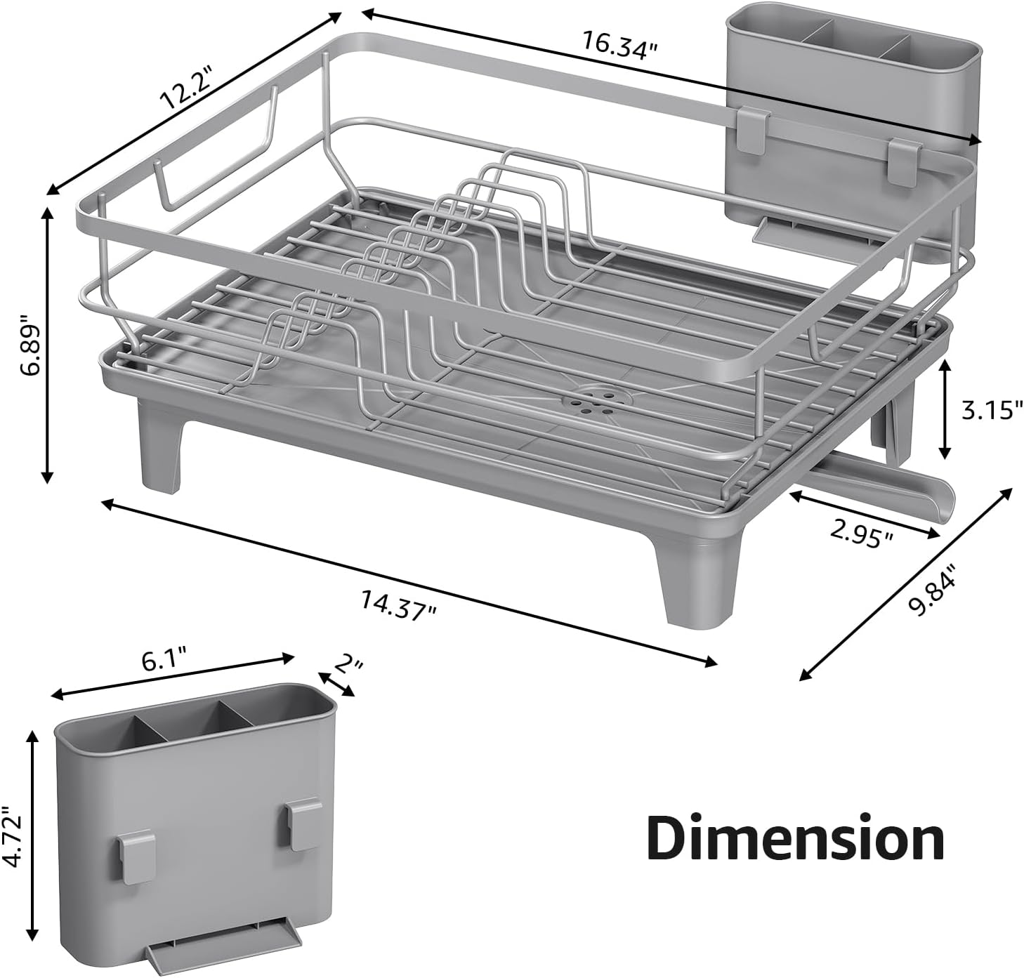 Urackify Dish Drying Rack for Kitchen Counter, Multifunctional Dish Drainer Rack, Space-Saving Dish Rack, Sink Kitchen Dishes Strainer, Plate Rack with Drain Board, and Cutlery Holder,Gray