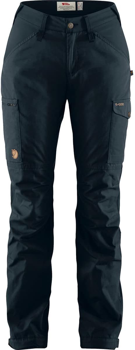 Built with durable G-1000 Eco fabric, the Fjallraven Kaipak Trousers Curved feature reinforced panels over the knees to ensure you're covered no matter where you're next hike takes you. Articulated fit is built with pre-shaped knees and rear. Belt loop waist with zipper fly and button closure. Two hand pockets, cargo pocket a thigh, internal mesh pocket, and axe loop at waist. Engineered fit provides a more streamlined silhouette that still delivers mobility due to preshaped knees and crotch gusset. Vented openings from hip to knee act as air channels and provide spaces for knee pads (not included.) Tapered hems with detachable straps and boot hooks. Reinforced suspended zones. Material: Material 1: 65% recycled polyester, 35% organic cotton Material 2: 88% polyamide, 12% elastane Machine wash, tumble dry.
