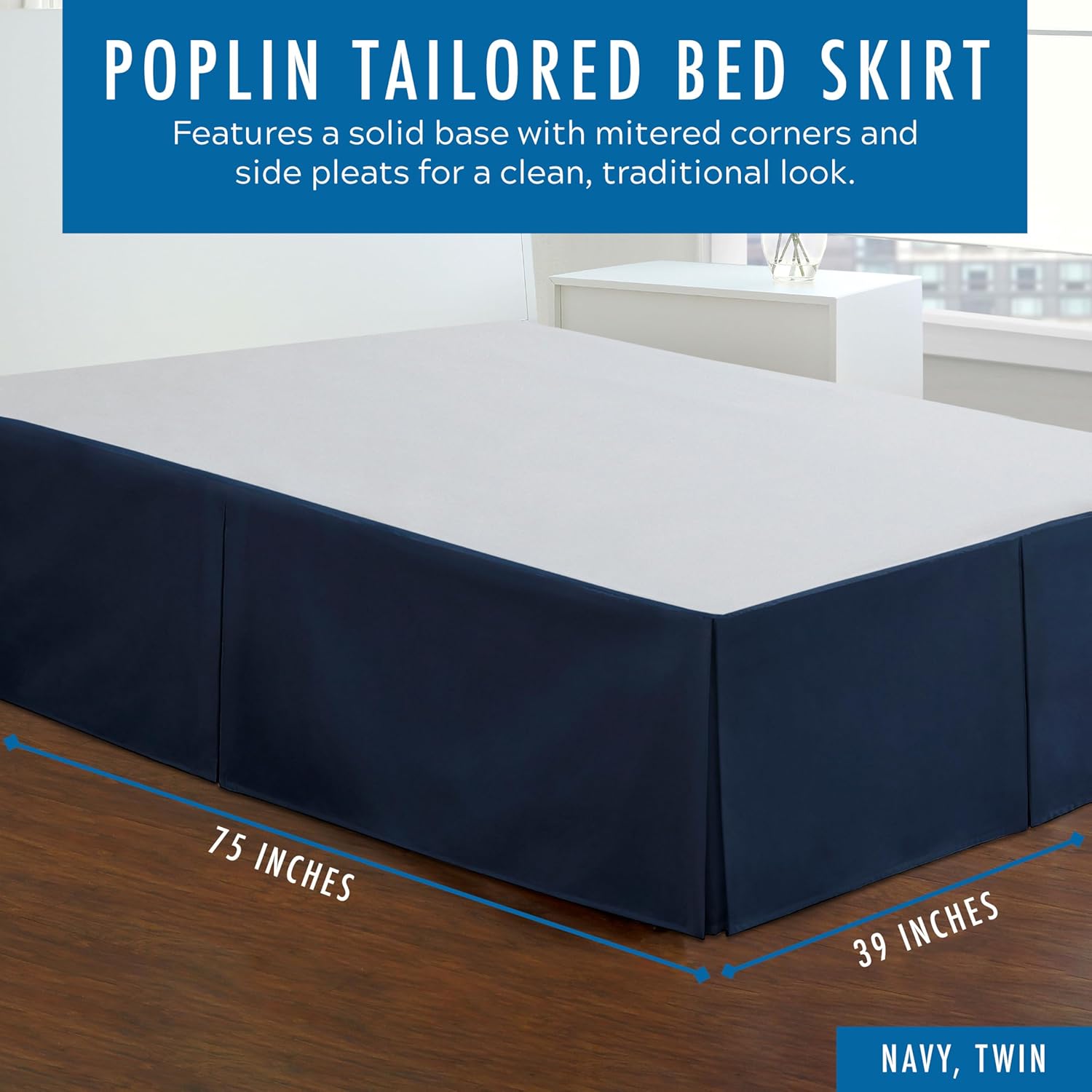 Fresh Ideas Bedding brings you elegant Tailored Bed Skirts at an affordable price! Fresh Ideas Bedskirts are made from an easy-care crisp poplin fabric for a beautifully smooth finishing touch to your bed. Features a traditional white platform and 14-inch drop around the bottom of the bedframe to create that “well-made bed” look. Fabric is pre-shrunk and colorfast for longevity and shape retention. Complementary matching pillow shams are also available. These tailored bedskirts and shams were designed to coordinate with other bedding products such as comforters, duvet covers, flat sheets, fitted Sheets, and pillowcases. Pair with Fresh Ideas Tailored Poplin Shams. Soft luxury bedding at an affordable price. 14-inch drop to cover boxspring, bed frame and legs. Generous pleated styling for a contemporary refined look. Elegant tailoring with easy-care fabric. Fade-resistant and shrink-resistant. Machine wash on cold. Tumble dry on low.
