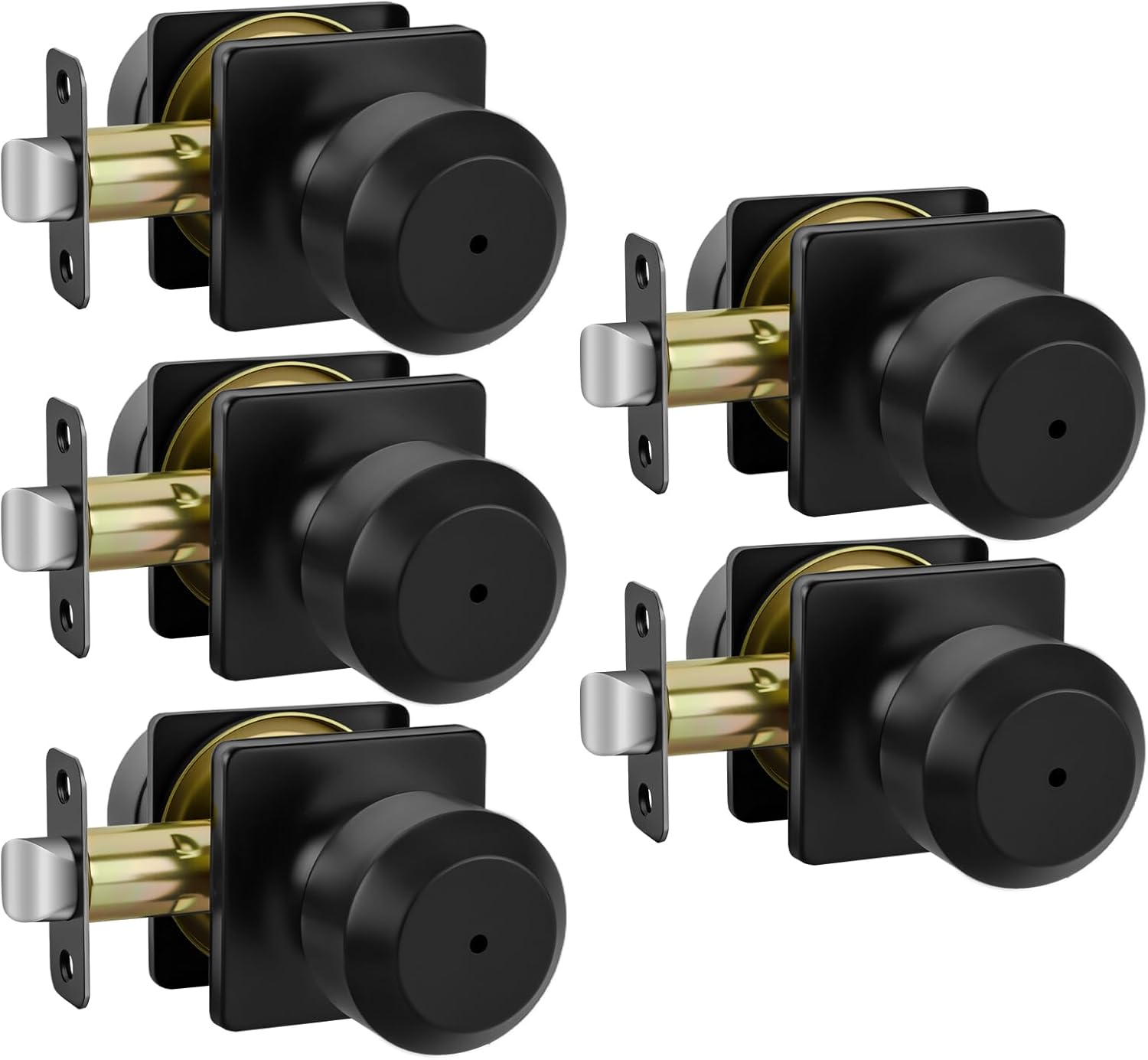 Haidms 6 Pack Black Door Knobs Interior, Privacy Interior Door Knob for Bedroom or Bathroom, Matte Black Door Knobs