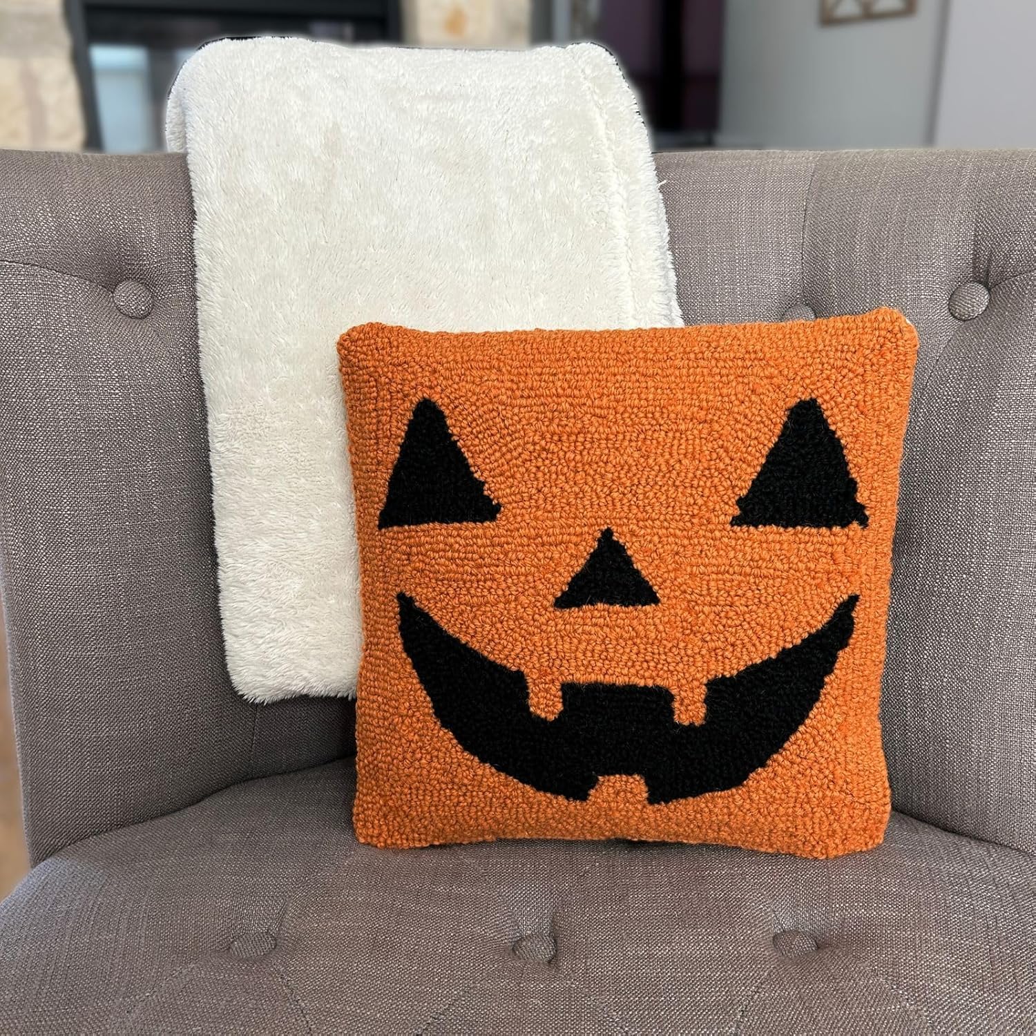 This Pumpkin pillow measures 12X12 inches and is a premium quality hook throw pillow that looks great on any couch or bed. With a cute fun trendy design this decorative pillow also looks great in dorm rooms at college.