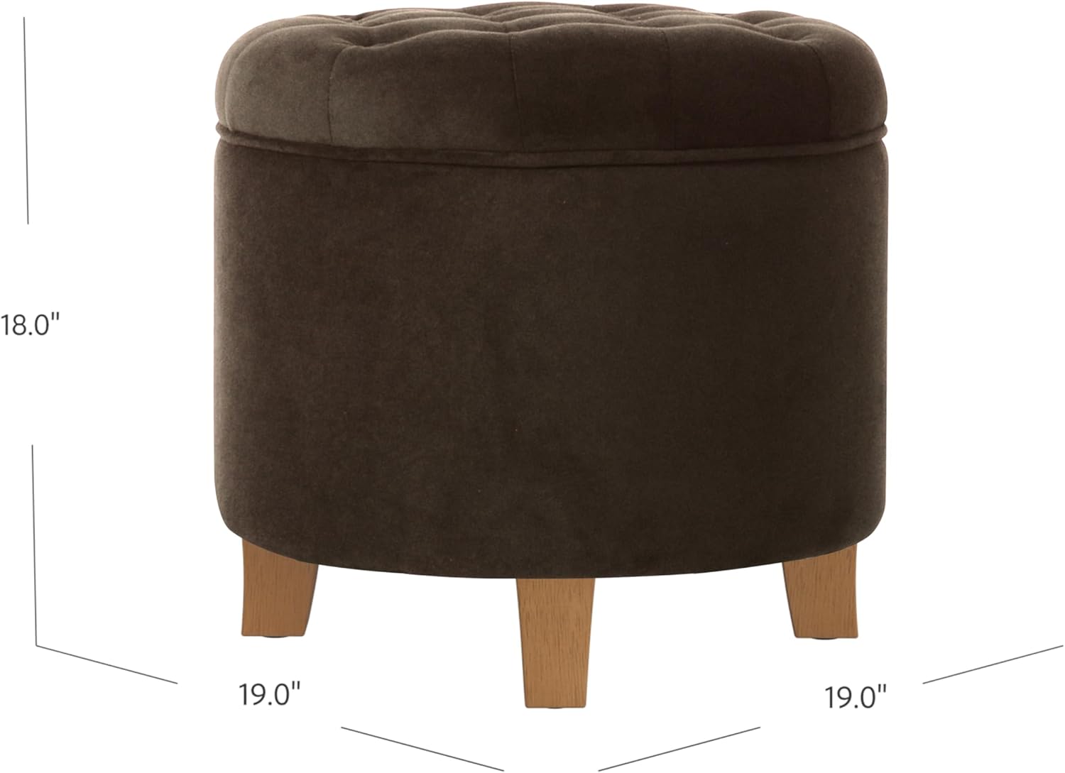 This Tufted Round Ottoman features a lift-off lid with all over button tufting for classic style. Upholstered in soft and durable cream textured woven fabric, this elegant round ottoman has wood legs in a warm honey oak finish. Use as a storage ottoman to hide accessories in a bedroom, to store books or magazines in a living room, or to keep controllers or remotes nearby but out of sight. Pair two together for added impact. Our tufted ottoman is available in a range of rich colors and textures with coordinating accent items in the same hue. Easy to assemble and maintain.Easy to assemble and maintain.Please note that fabric and wood colors may appear slightly different due to variations in lighting or screen settings.