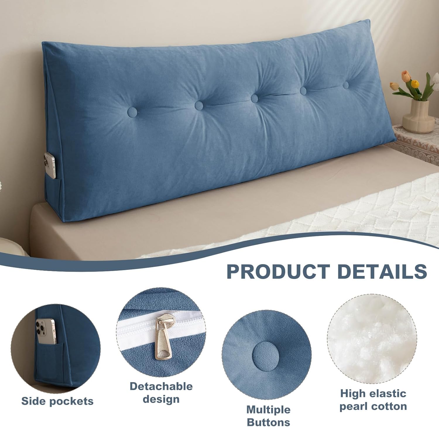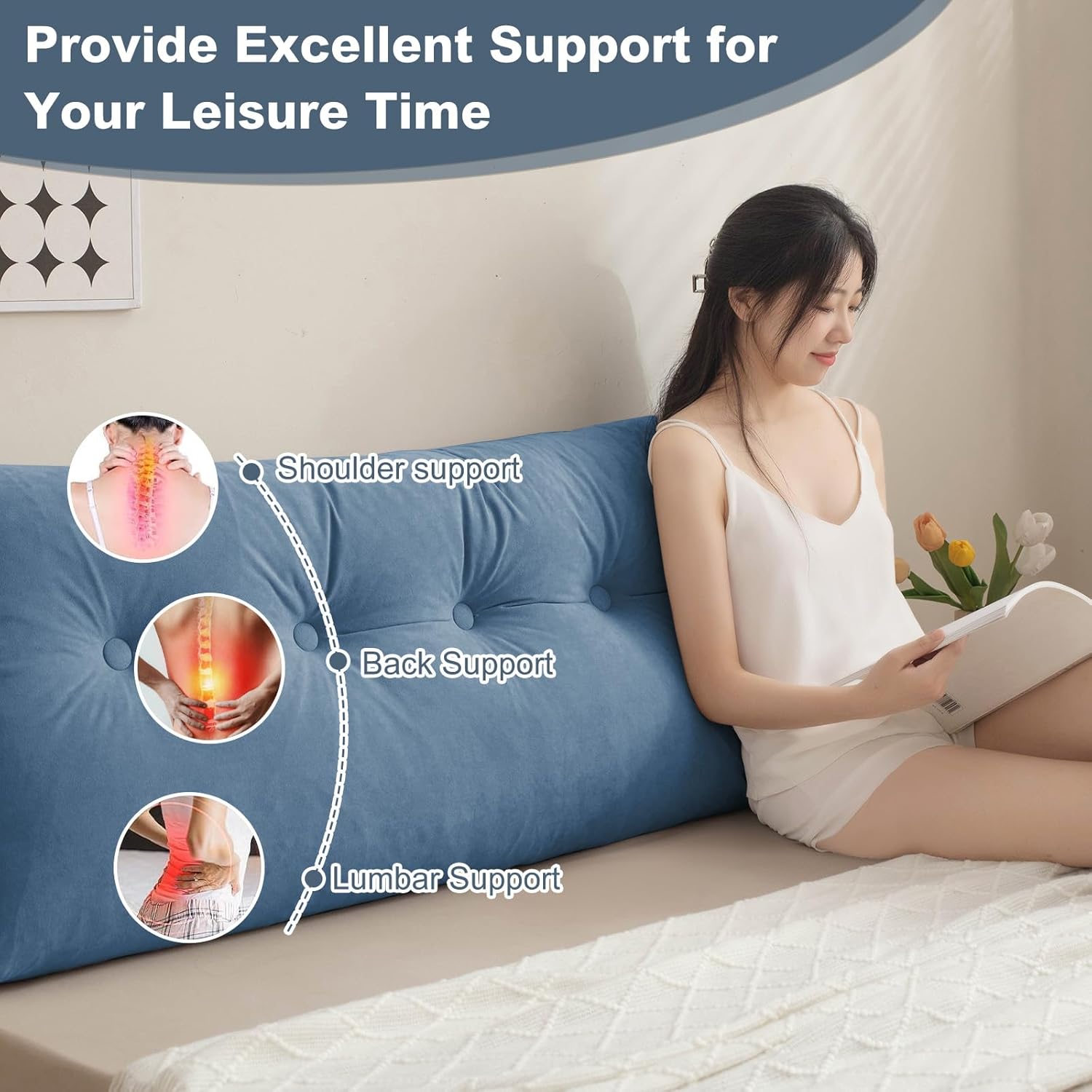 The backrest pillows for sitting in bed is crafted with Chenille fabric and pearl cotton core. The plush yet supportive filling provides the right balance of softness and firmness, cradling your body and relieving pressure points. Whether sitting up in bed, on the floor, or in a chair, bolster pillow for legs offers exceptional comfort and support for your back, neck, and shoulders. The cover is made from a soft and breathable fabric that enhances overall comfort and adds a touch of luxury to your space. Designed with your comfort in mind, this versatile pillow is perfect for lounging, reading, or even as a support cushion for various activities, is a must-have addition to your bedroom or living space. Note: 1.The dorm pillow headboard will be shipped in a compressed form. Upon receiving it, use a hair dryer to restore its fluffiness.2. There may be a slight difference between the picture and the actual item due to variations in lighting.3. Kindly allow for a 1-2cm size deviation due to handmade.