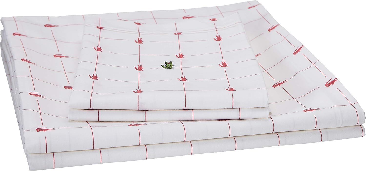 Relax in supreme comfort with Lacoste Cotton Percale Sheets. With a vibrant palette of solid color designs, you can pick the perfect color to match your personal style, whether your taste is classic or modern. Lacoste: Following our core values of optimism and elegance, we pave the way in everything from our iconic polo shirts to premium bedding and luxury bathroom décor. Our constant search for excellence is reflected in the high-quality, modern collections we design, create, and market. Enter the world of Lacoste and share in our vision of casual elegance, optimism, and faith in the future. Package Contents: Flat Sheet (1) Fitted Sheet (1) Pillowcases (2)