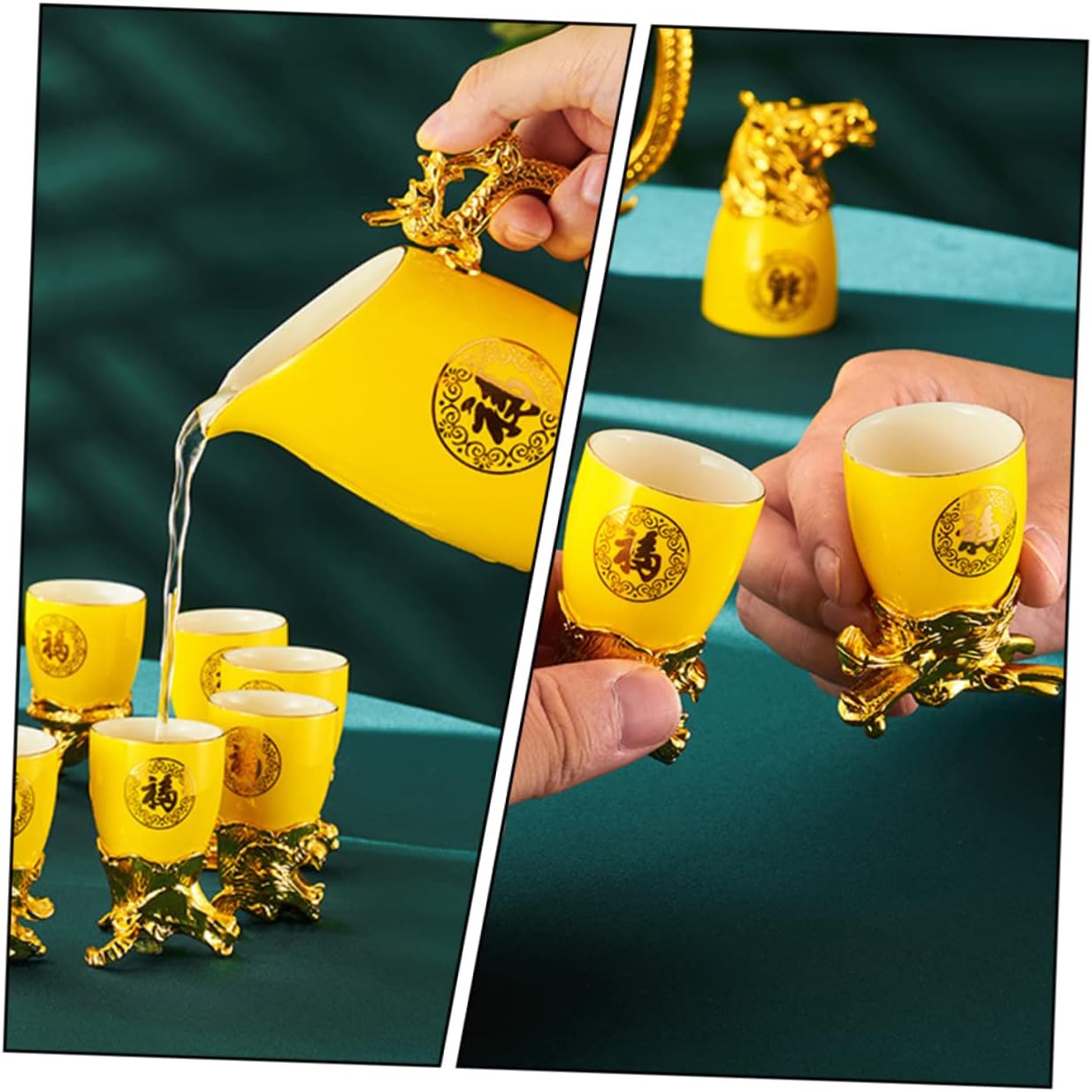 Package List 12 x Chinese Zodiac Wine Cups 1 x Wine Dispenser 1 x present Box Features -Size (Wine Cup): About 6.50X4.00X4.00cm/2.56X1.57X1.57in Gold-plated Cup -Material: Ceramic Ceramic Drinking Kit -Size (Wine Dispenser): 12.50X11.00X7.00cm/4.91X4.32X2.75in Container -Color: Yellow Wine Pot - for drinking at your celebratory party with friends, with stylish and creative elements Creative Animals Cups. -Gold-plated Chinese zodiac drinking utensil with a retro Chinese design, creating a unique atmosphere Cups Kit. -Traditional Chinese style, suitable for many occasions. Also, a nice ornament Home Ornament. -The surface is smooth, the hand feels smooth and comfortable, and they are to use Zodiac Cup. -These wine containers are made of ceramics, which are and Ceramic Wine Kettle.Goods Information Cups Kit This is a gold-plated Chinese zodiac drinking utensil with a retro Chinese design, creating a unique atmosphere.Gold-plated Wine Cups You can give it to your friends who like to drink, this product looks very high-end atmosphere.Chinese Style Container The material is excellent and easy to store