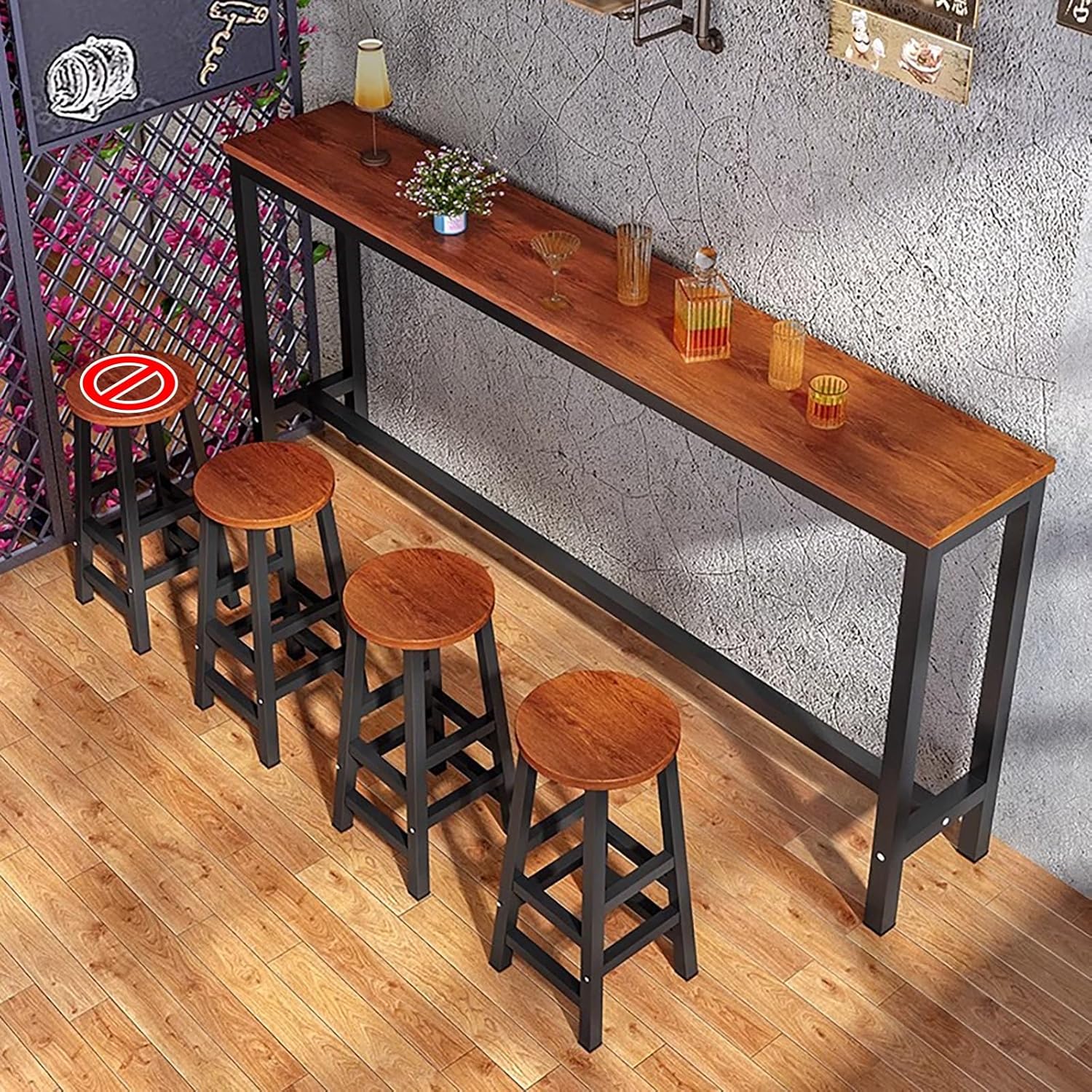Modern Wood Bar Table Set Narrow Side Table Modern Rectangular Bar Height TableCrafted from sturdy wood, this bar table ensures practicality and stability, with a smooth, scratch-resistant finish that withstands daily use.The sturdy legs offer reliable support, while the clean, minimalist design enhances any modern, industrial, or rustic décor. Crafted from sturdy engineered wood, the table features a rich wood grain finish that adds warmth and character to your interior. Perfect for small spaces, this narrow side table features a rectangular bar-height design, making it ideal for kitchens, dining nooks, entryways, or commercial settings like cafés and bistros.Space-Saving Design – Fits perfectly in tight corners, studio apartments, or small kitchens.Multi-Purpose Use – Great as a kitchen island, bistro table, or even a standing desk.Easy Assembly – Quick setup with included hardware and clear instructions.Low Maintenance – Wipe clean with a damp cloth for effortless upkeep.Suitable for any home style:Compact kitchens or apartmentsContemporary cafés or coffee shopsNarrow entryways or hallwaysMulti-purpose side or console table usePackage Contents:1 x Bar Table1 x Accessory KitNotes:This product is intended for home use only.Children are not allowed to climb on or play with the product for safety reasons.The max. static load capacity of each stool is 220 lb. Please do not exceed its weight limit.Please attach the product to the wall with the included antitip kit for safety.Do not lean back and forth while sitting on the stool to avoid falling over.Do not use the product in humid environments. If you accidentally spill water on it, wipe it off immediately with a dry cloth.`