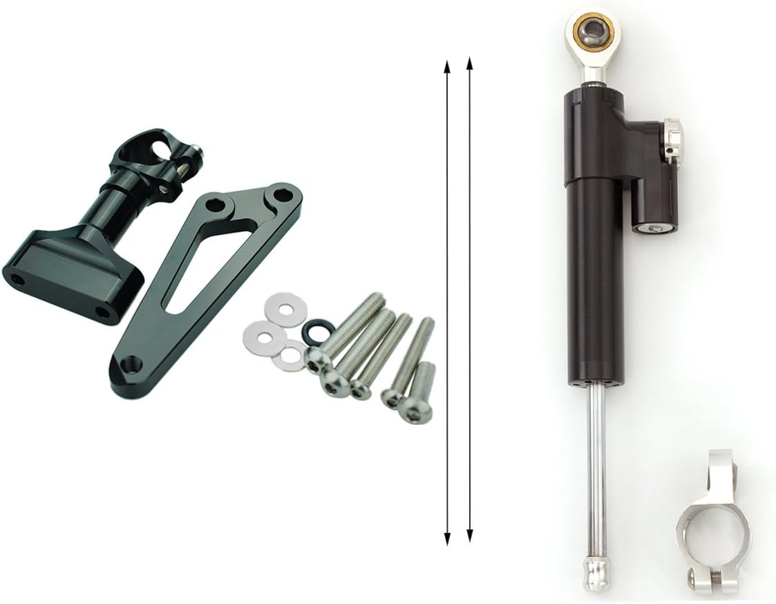 Fitment: for CB600F HORNET 2007-2016 Feature: 100 % brand new Material:T6061-T6 Aluminum (High Quality Material, Light grade & Light-weight) Finish: CNC & Anodized (durable and not easy to fade) Color : Show as pictures If you need other colour,please leave me a note after payment, thanks! Weight: 1 LB Others: Perfect fit and no modification is needed, No installation instructions Extraordinary advantages: 1.His risk is minimal. High stability 2.The dampers are fully adjustable and can be adjusted in 22 positions so there will be a position for every rider 3.The twin-tube clamp ensures that the clamping force of the tube clamp does not obstruct the piston 4.Nitrogen pressurised heat expansion reservoir prevents the forming of air bubbles 5.Mounting kits went through countless tests through any riding conditions Package Included: 1x Adjustable Steering Damper & Stabilizer Mounting Kit Full Set Note: 1.After installation, turn the head to the very right and very left to check whether there is enough room for the activity of steering damper or not 2.Check if the steering damper and its kit reach the motorbike or oil tank his kind of risk to a bare minimum. Tank slappers and vibrations are intercepted by the damper About after-sales service: Provide three months free warranty We provide high quality products and best service to each customer Everyone, If you have any questions, please do feel free to connect with us