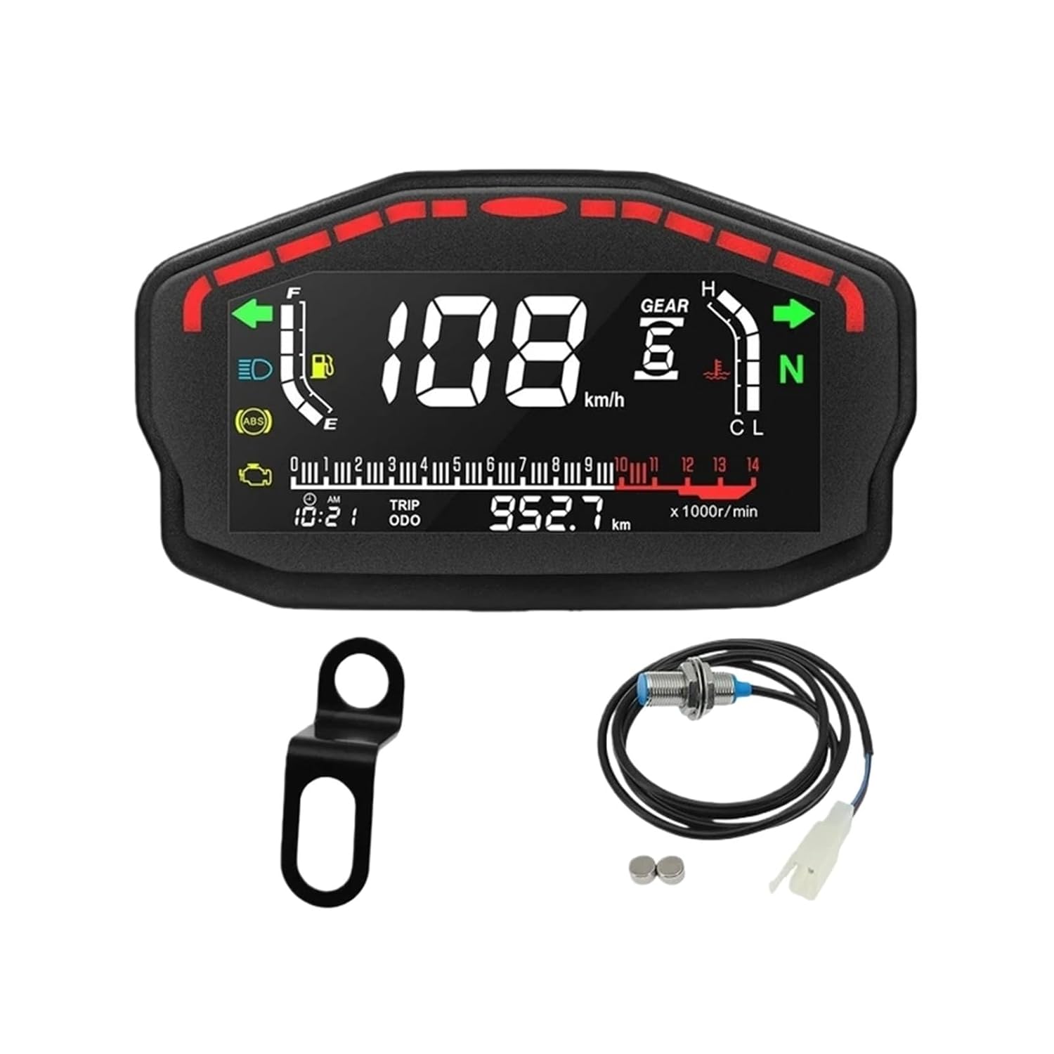 Dear friend, thank you for visiting my store. If you have any questions during the purchase process, Contact us,Thank you! Happy shopping!Motorcycle Digital Panel Universal Speedometer Odometer 2 4 Cylinder For HO&ND&A For Du&cati For KA&WAS&AKI For Su&zukiExperience: Upgrade your motorcycle instrument cluster with faster response than analog gauges, seamless integration, and an enhanced riding experience.Power voltage: DC 8-12VCase Color: BlackSpeed Display: km/h, mphSpeed Display Range: 0-199km/h(mile)<;0.5 secondOdometer Display: 0~999999km(mile)Odometer Display Unit: 0.1kmTrip Meter Display Range: 999.9km(mile)Trip eter Display Unit: 0.1kmRpm Range: 0~14000r/minTime: 12HQuick Setting for Trip Odometer, TimeWhen power on the Speedometer,1)Quick Press side button, switch show TRIP, ODO2)When show ODO, press and hold the side button for 8 seconds, switch unit between km &mile3When show TRIP press and hold the side button for 4 seconds, TRIP odometer will reset tozero.4)When show ODO, press and hold the side button for 4 seconds, you can enter TIME setting menu:Quick press to set value, long press 3 seconds to switch Hour & MinuteMaterial:ABS Plastics【Service Guarantee】If you have any installation and product problems after receiving the goods, you can contact us, we will handle the problem properly.
