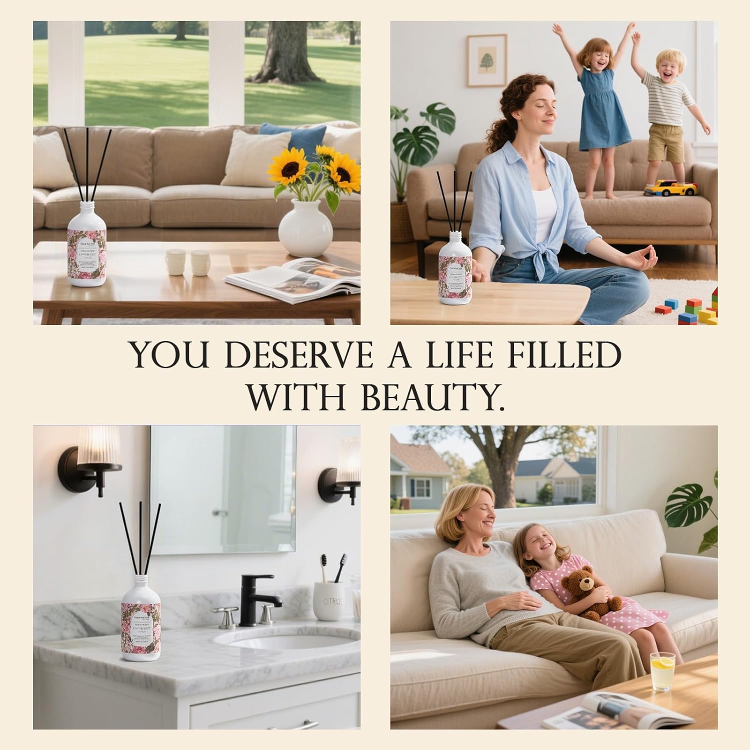 • Amber Glass Design - Our reed diffuser set with amber glass construction reduces light-induced oxidation, preserving essential oil integrity for 62+ Days. This scented diffuser effectively maintains strong aroma, creating a long-lasting, cozy fragrance for home.