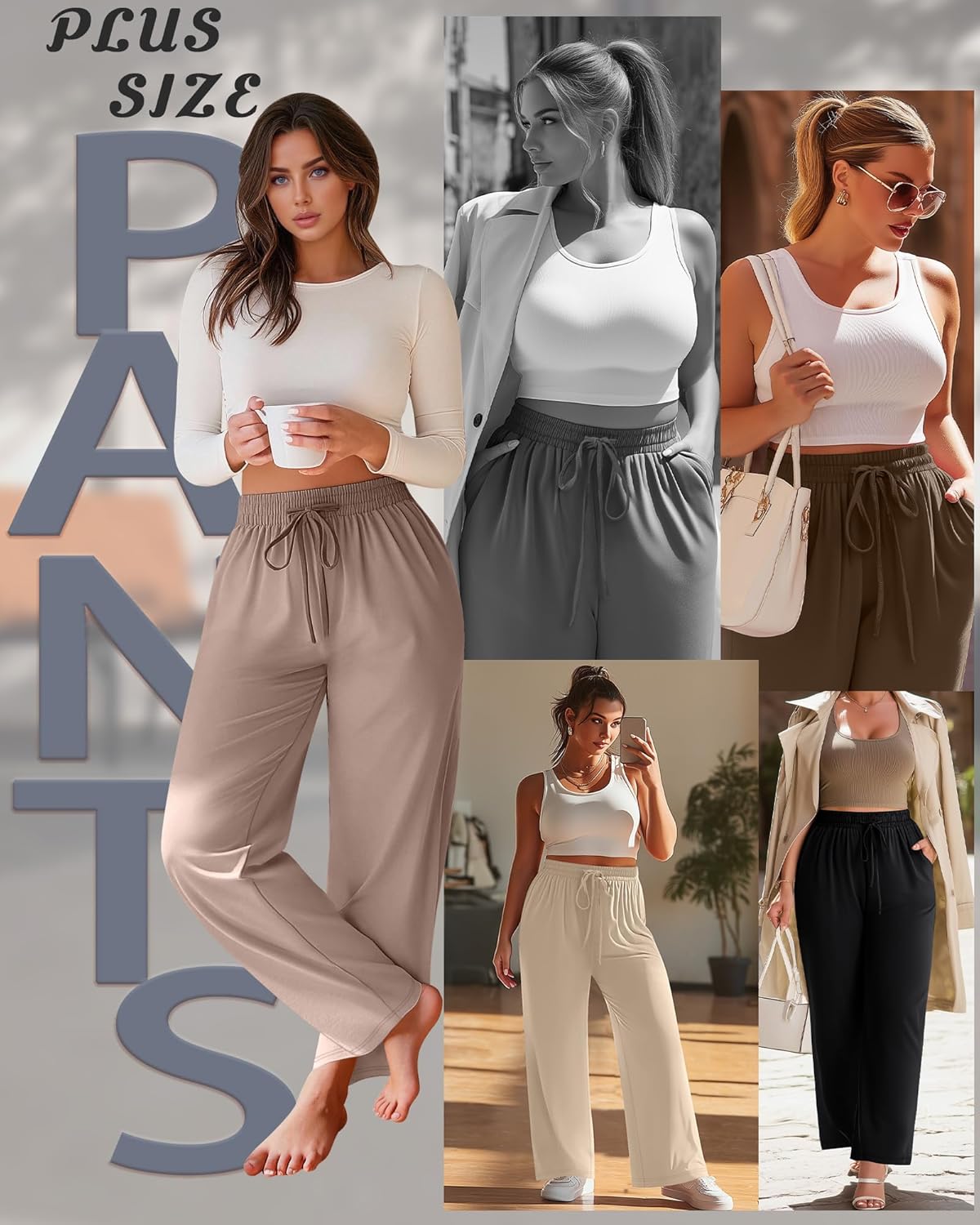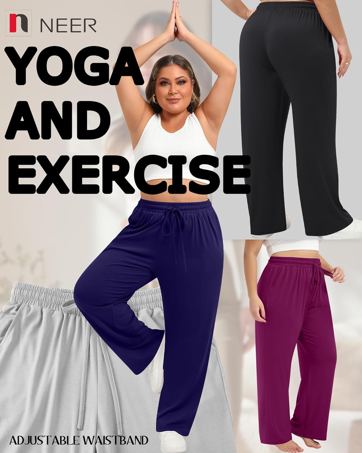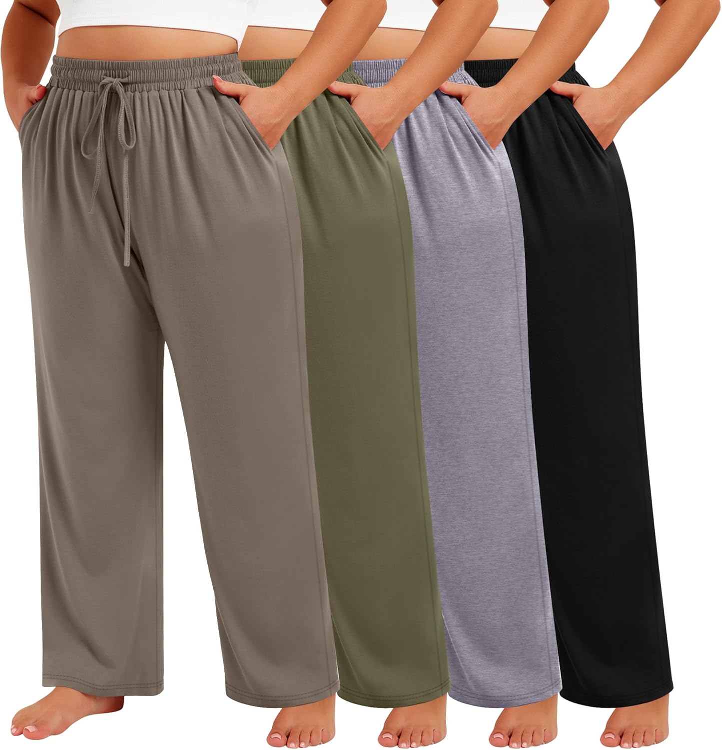 Features: Womens plus size sweatpants can be hand washed or machine washed, wash in cold water on a gentle cycle, hang dry or line dry, do not bleach, warm iron if necessary, wash dark colors separately. Plus size lounge pants are designed with straight wide leg, loose style, elastic waistband with adjustable drawstring, two side pockets can easily fit your mobile phone, convenient for storing small items, making exercise easier. Material: 60% Polyester, 35% Cotton, 5% Spandex Package includes: 4 X Women's Plus Size Wide Leg Sweatpants Notes: Manual measurement, please allow slight errors on size. The color may exist a slight difference due to different screen displays