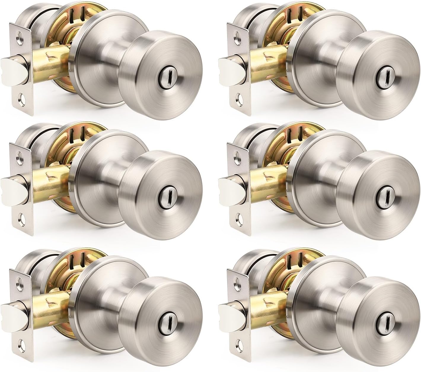 Orger 6 Pack Satin Nickel Interior Door Knobs, Reversible Non-Locking Passagee Door Knob, Keyless Round Doorknob for Hallway and Closet