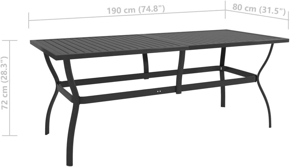This stylish patio table featuring a slatted design adds a touch of industrial style to your outdoor living space.This outdoor table is made of powder-coated steel, making it sturdy and stable. Additionally, the tabletop has a hole in its center for holding a parasol.Color: AnthraciteMaterial: Powder-coated steelDimensions: 32.1" x 32.1" x 28.3" (L x W x H)Tabletop thickness: 1.2"Hole diameter: 1.6"Assembly required: Yes