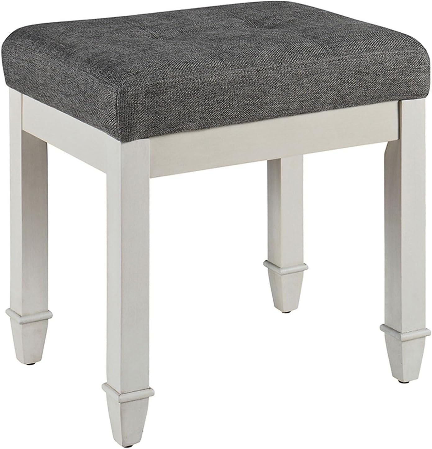 A stylish stool is the perfect addition for any room size- big or small,the bedroom,living room,office,basement,apartment,or loft. Whether you are looking to spice up your interior design,or add a touch of leisure to a room,this stool easily fits in a corner,or anywhere else you desire. Material: solid wood,cloth,spongeColor: Light gray ,Dark grayFrame: Walnut ,WhiteOverall dimensions: 19"W x 14"D x 18"H/47*36*46 cmCushion thickness: 3"W/8 cmMaximum load capacity: 330 lbs/150 kgPackaging gross weight: 11 lbs/5 kgPacking size: 20" *15" *7" /50*39*17 cm Dimensions are measured manually,there may be an error of 0.1-0.3",please understand. If you have any questions,please contact us via email in time,we will reply to you within 12 hours!