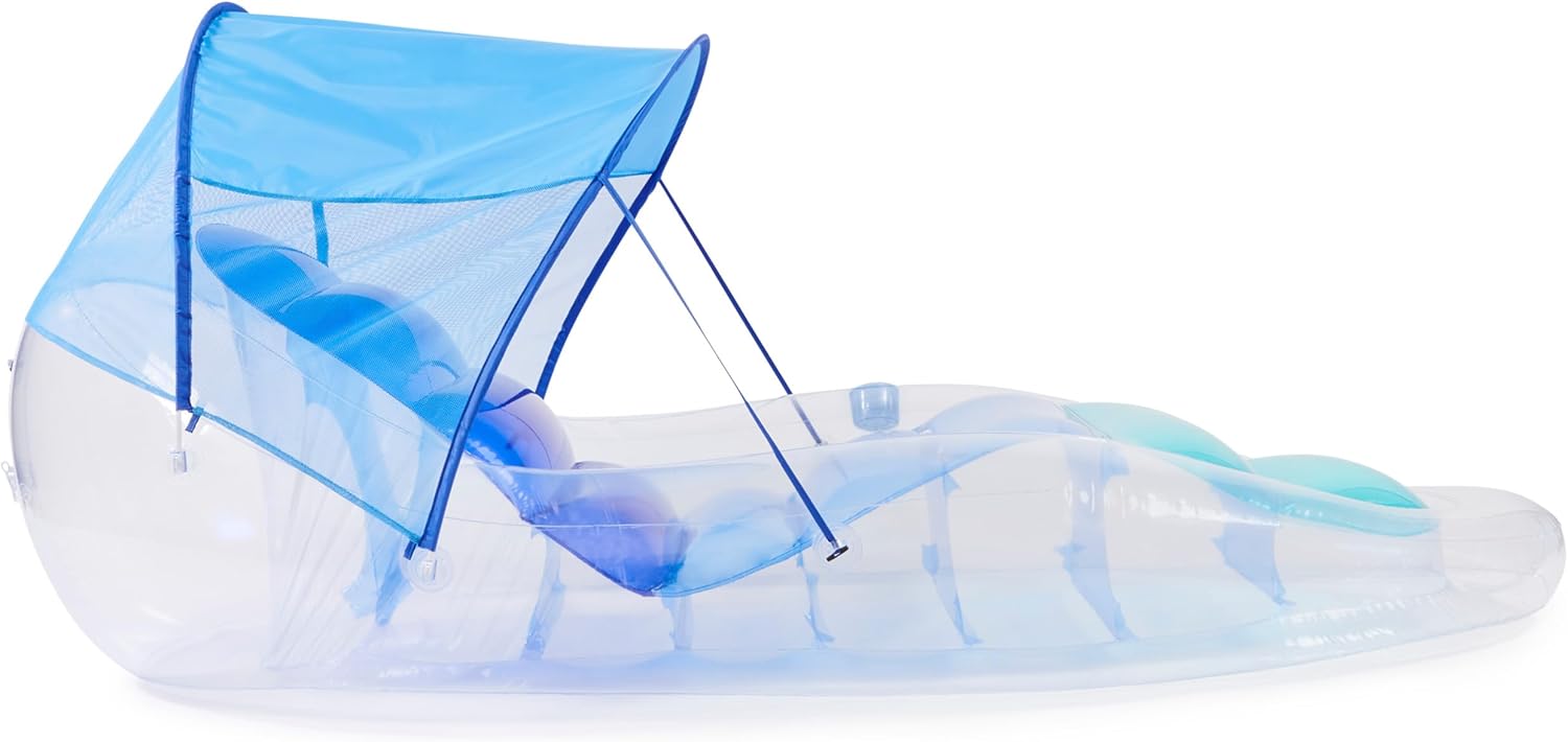 Swimways Dry Float Shadester Pool Float, Translucent Inflatable Recliner Chair for Adults with Fast Inflation, Canopy, Foot Rest & Cup Holder