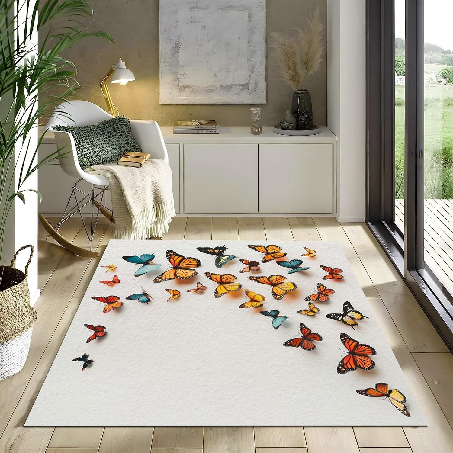 We are committed to providing customers with unique, high-quality home textile products that bring warmth and comfort to your home. We have a professional in-house production team and a creative design department, and we’re confident you’ll love our products. Printed Pattern Rug: This area rug showcases a vibrant, digitally printed design with intricate details—adding unique style and color to any room. Ultra-Soft & Pet-Friendly: The carpet features an ultra-soft faux wool surface, offering a plush and comfortable texture that's perfect for children to play on and pets to roam freely. Non-Slip Backing: The area rug features a non-slip backing with strong grip, helping to keep it securely in place—no more slipping or bunching while kids or pets are playing. Multi-Use & Perfect Gift: Our area rugs are suitable for both indoor and outdoor spaces—such as living rooms, bedrooms, kitchens, offices, playrooms, and more—and their simple, practical, and beautiful design makes them a thoughtful gift for birthdays, holidays, and special occasions. Description: Size Information: 4 x 6 ft Package Includes: 1x area rug + 4 non-slip stickers Care Instructions: 1. Wash separately. Avoid soaking for more than 30 minutes. 2. Machine wash cold or hand wash on a gentle cycle. 3. Do not bleach. Tumble dry on low or hang to dry in a cool, shaded area. Warm Tips: The area rug may arrive with temporary creases due to packaging. Simply roll it in the opposite direction or smooth it out by hand, and the creases will gradually disappear. Customer Service: If you have any questions about our carpet or other products, please feel free to contact us. We’ll respond within 24 hours and do our best to resolve any issues you may encounter.