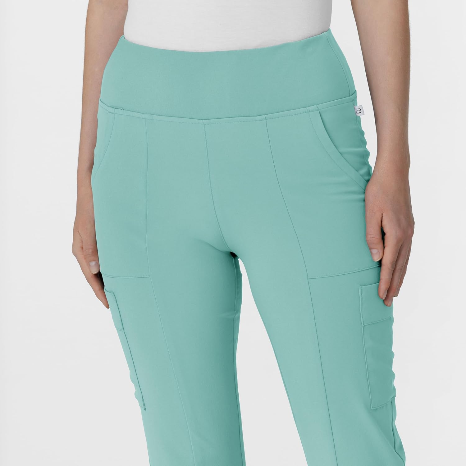 Introducing the Wink Women's Front Slit Flare Scrub Pant. Crafted from a polyester blend, these pants offer effortless movement and durability for your busy workday. The fashionable flared legs and front notch at the hem add a touch of trendiness to your work wardrobe, while the knit waistband, reminiscent of your favorite yoga pants, ensures exceptional comfort throughout your shift. Stay organized with two top-loading cargo pockets, two front pockets, and two back pockets featuring our Pocket Mate zipper pocket for secure storage of your essentials. The pants also include a badge loop and hidden card pocket for added convenience. Made from an environmentally and sustainable-friendly poly-blend fabric, you can feel good about your choice while looking great. Available in a variety of colors and sizes, the Wink Women's Front Slit Flare Scrub Pant is the perfect blend of style, comfort, and functionality for the modern professional. Upgrade your workwear today with these stylish scrub pants.